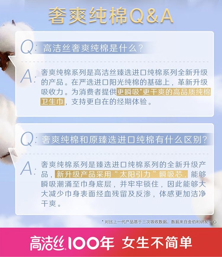 商品名称:高洁丝 卫生巾日用奢爽纯棉姨妈巾 臻选 280mm6片*3包