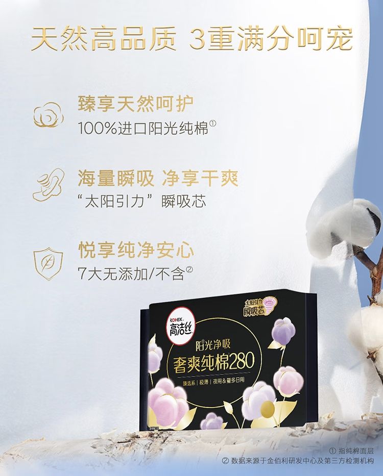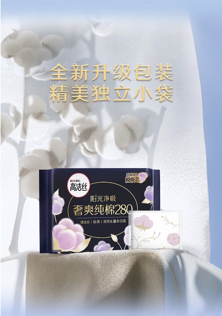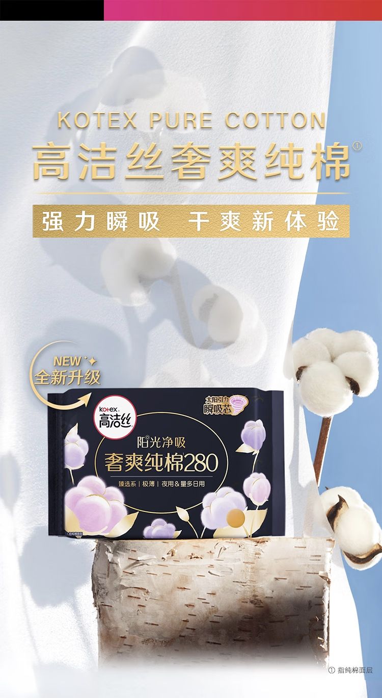 高洁丝 卫生巾日用奢爽纯棉姨妈巾 臻选 280mm6片*3包
