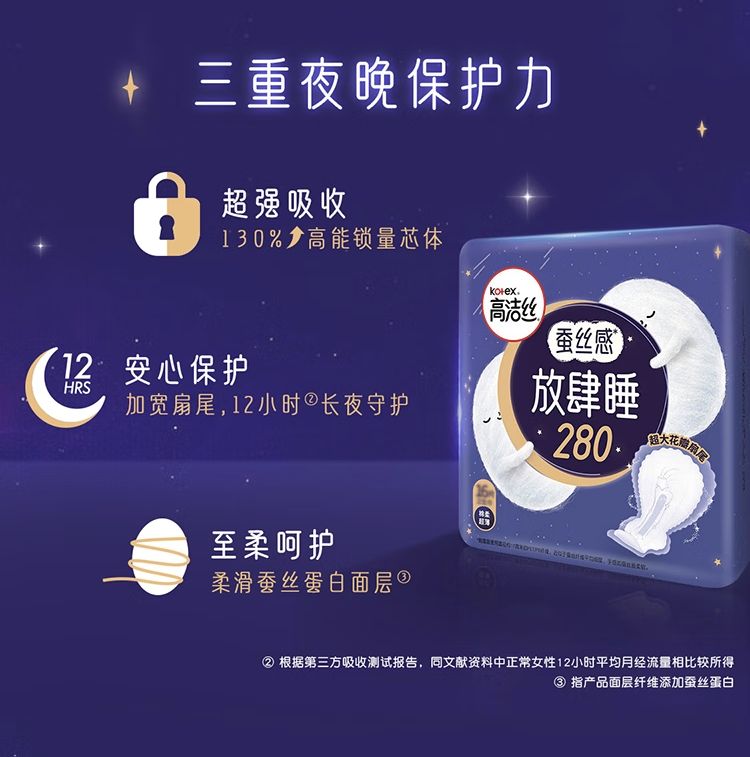 商品名称:高洁丝 放肆睡丝薄绵柔 夜用 280mm*16片