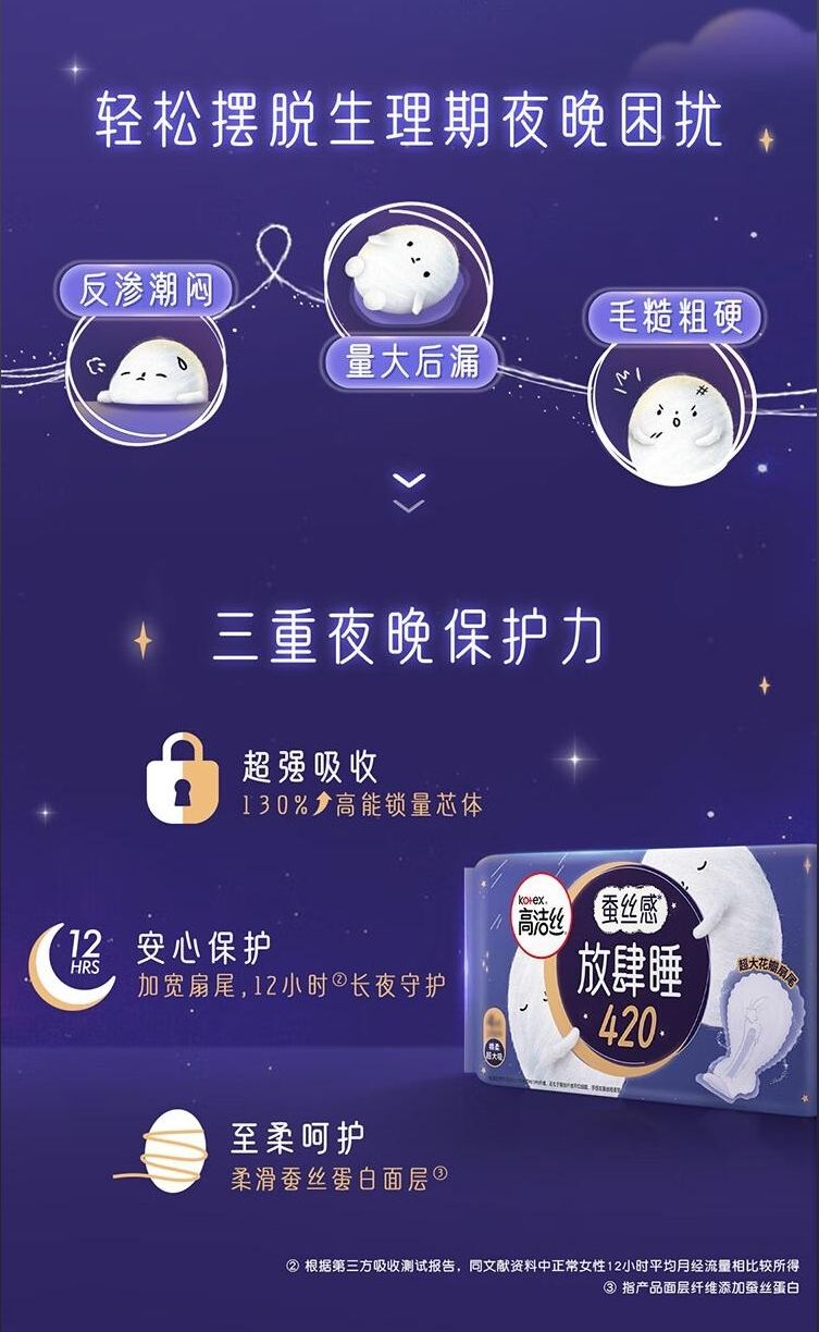 商品名称:高洁丝 放肆睡丝薄棉柔 夜用 420mm*4片