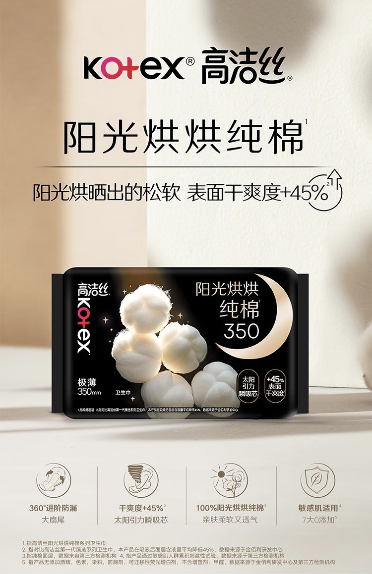 高洁丝 奢爽纯棉极薄 夜用 350mm*4片