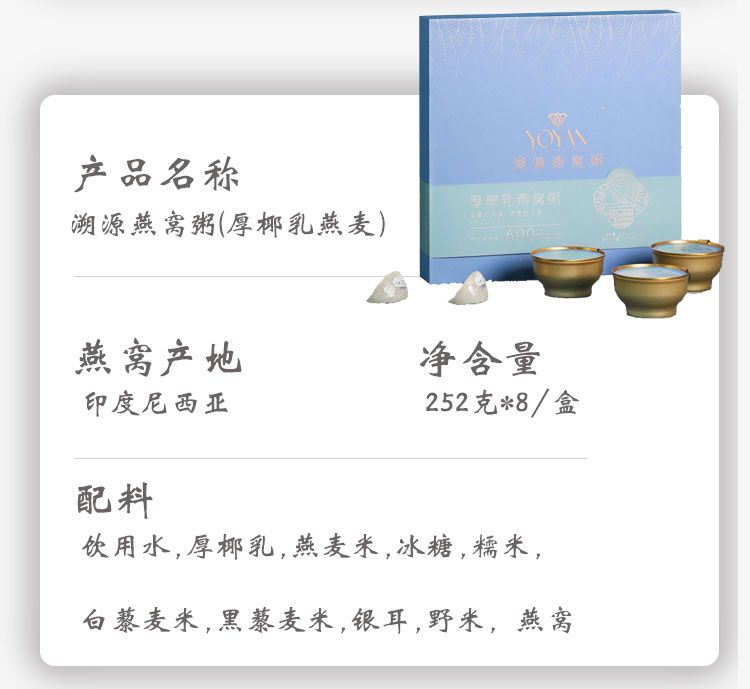 商品名称:贝师傅溯源燕窝粥(厚椰乳燕麦)252g×8碗
