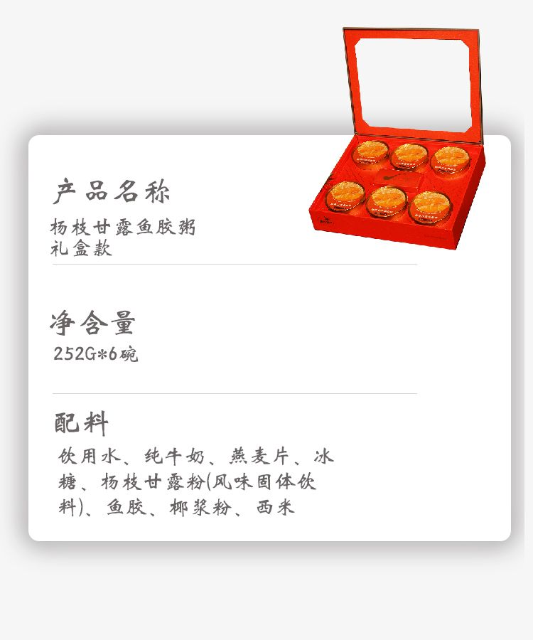 商品名称:贝师傅杨枝甘露鱼胶粥礼盒 252g*6碗