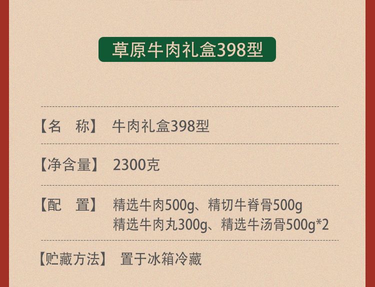 商品名称:25年贝师傅草原牛肉礼盒398型(特价)2300g