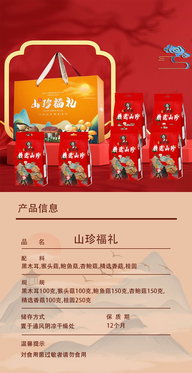 山珍五福礼盒780g