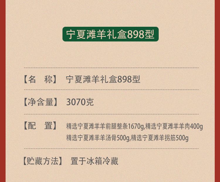 商品名称:25年贝师傅宁夏滩羊礼盒898型 3070g
