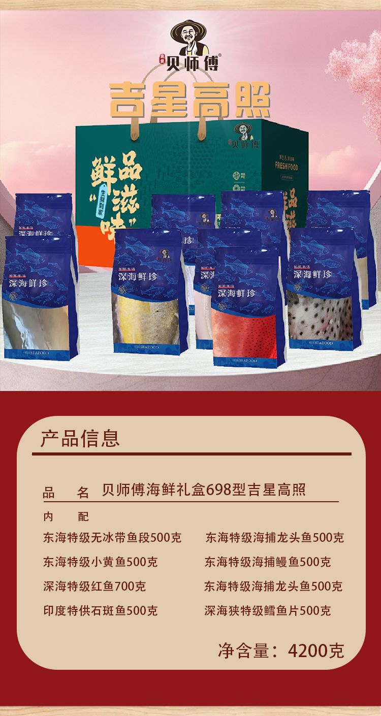 商品名称:25年贝师傅海鲜礼盒698型-吉星高照 4200g