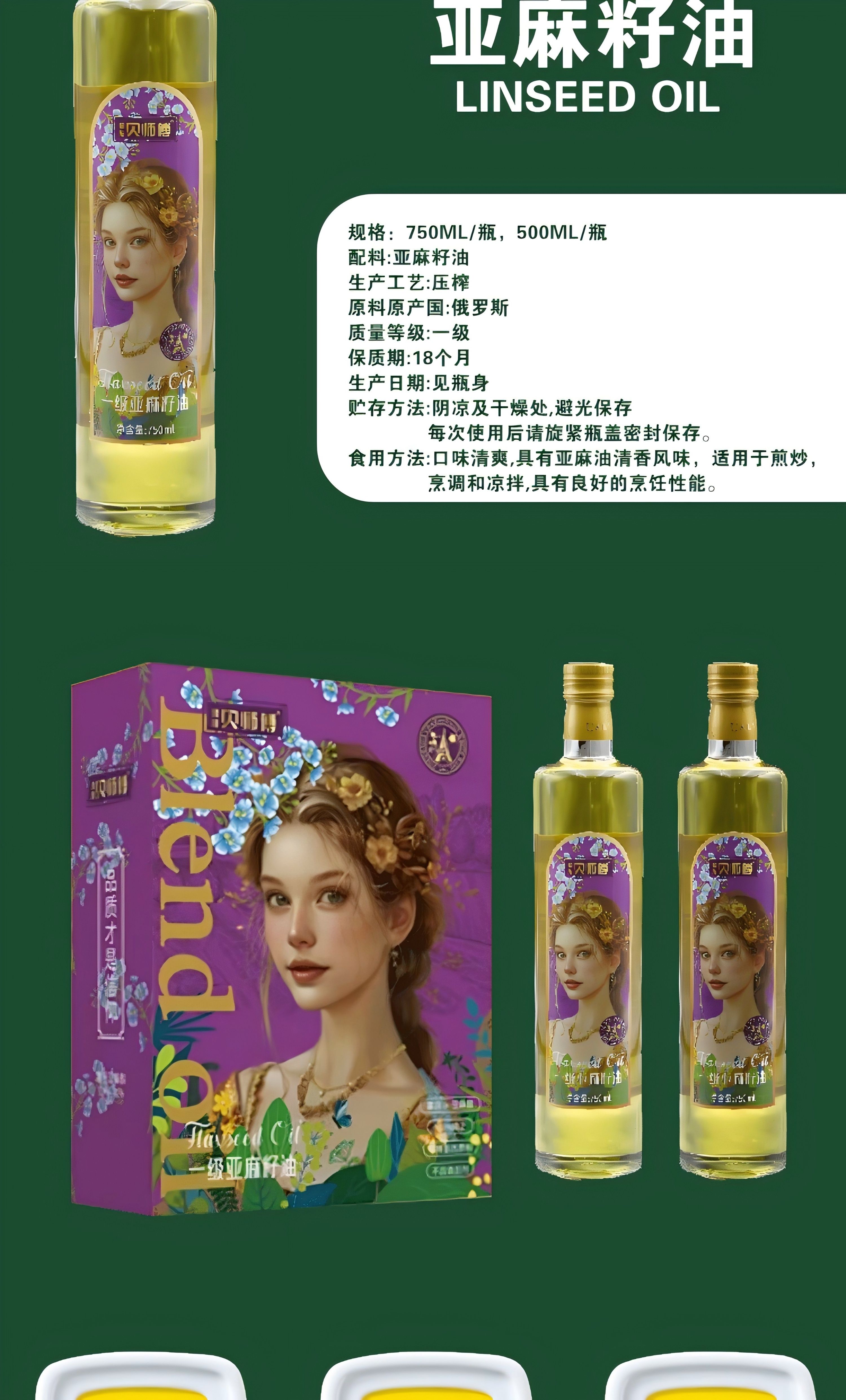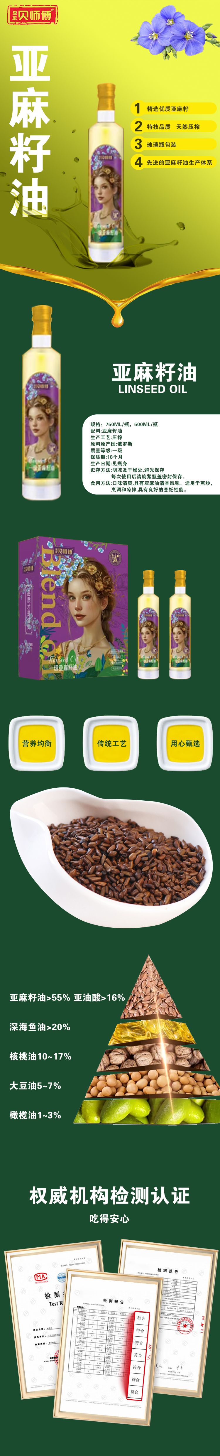 商品名称:贝师傅一级亚麻籽油