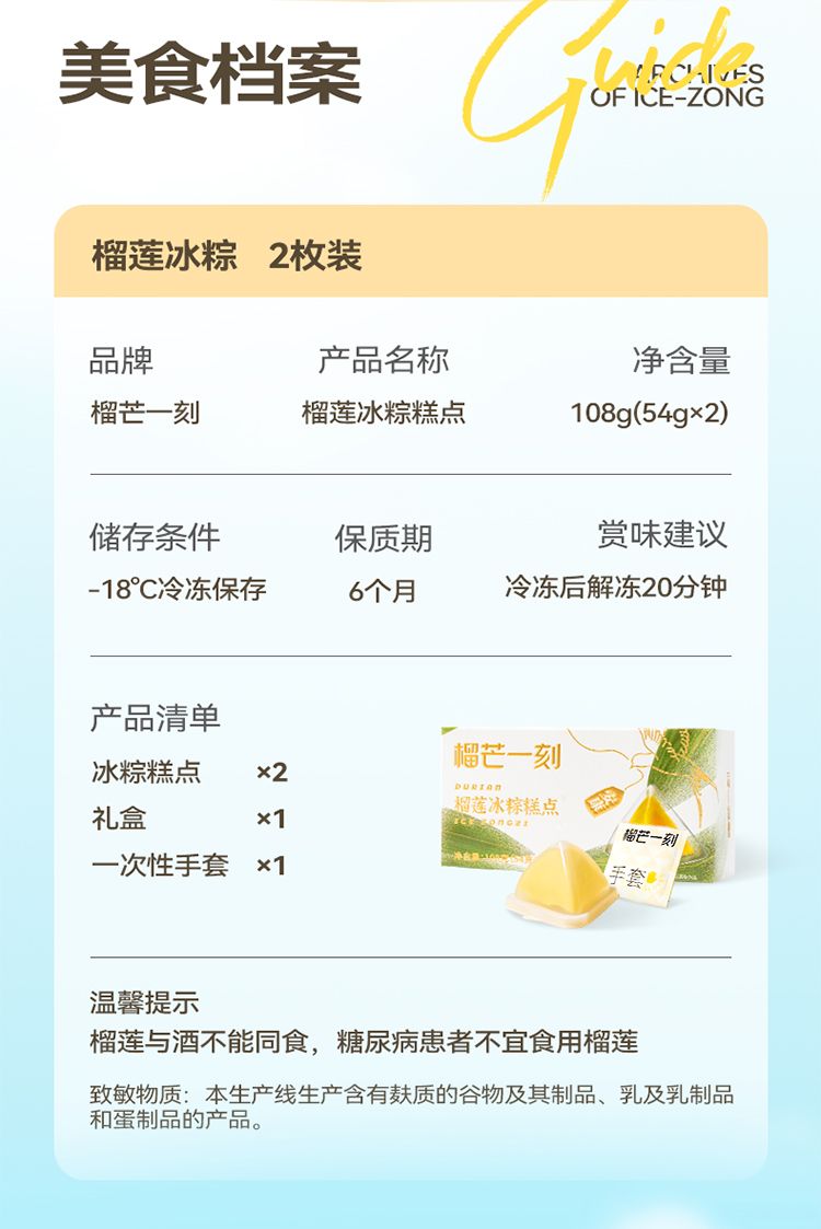 商品名称:【多仓发货】榴芒一刻 尝鲜装榴莲冰粽54g*2枚装*2盒