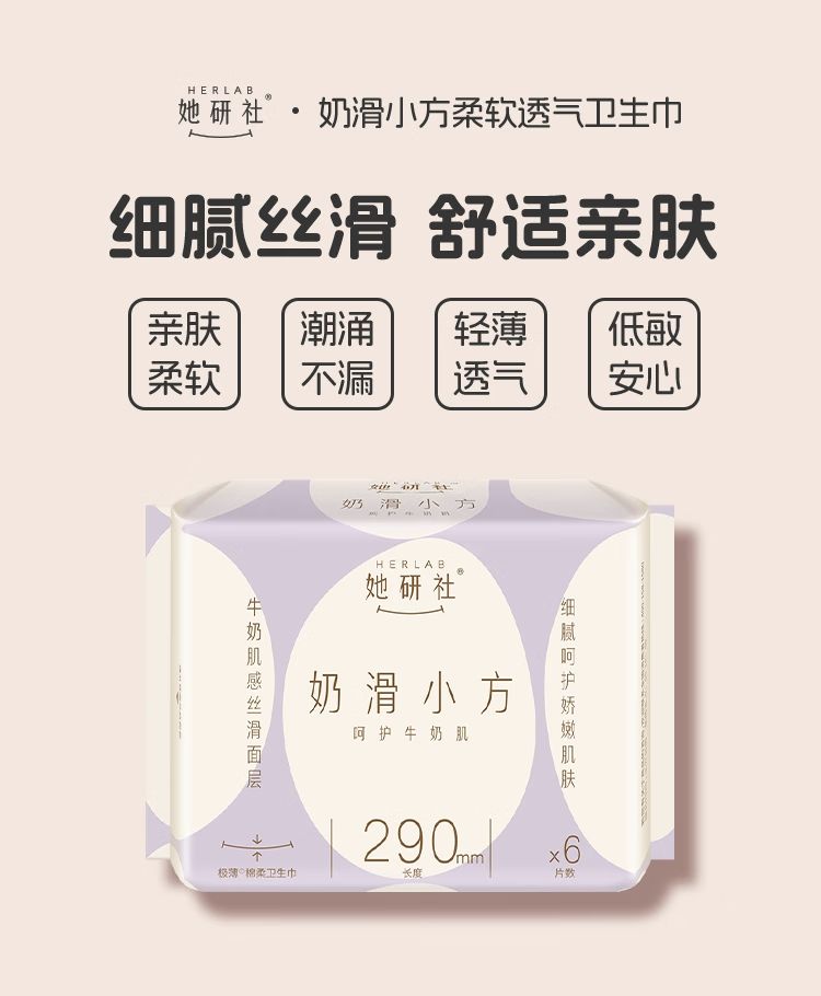 商品名称:她研社 奶滑小方卫生巾 夜用 290mm*6片