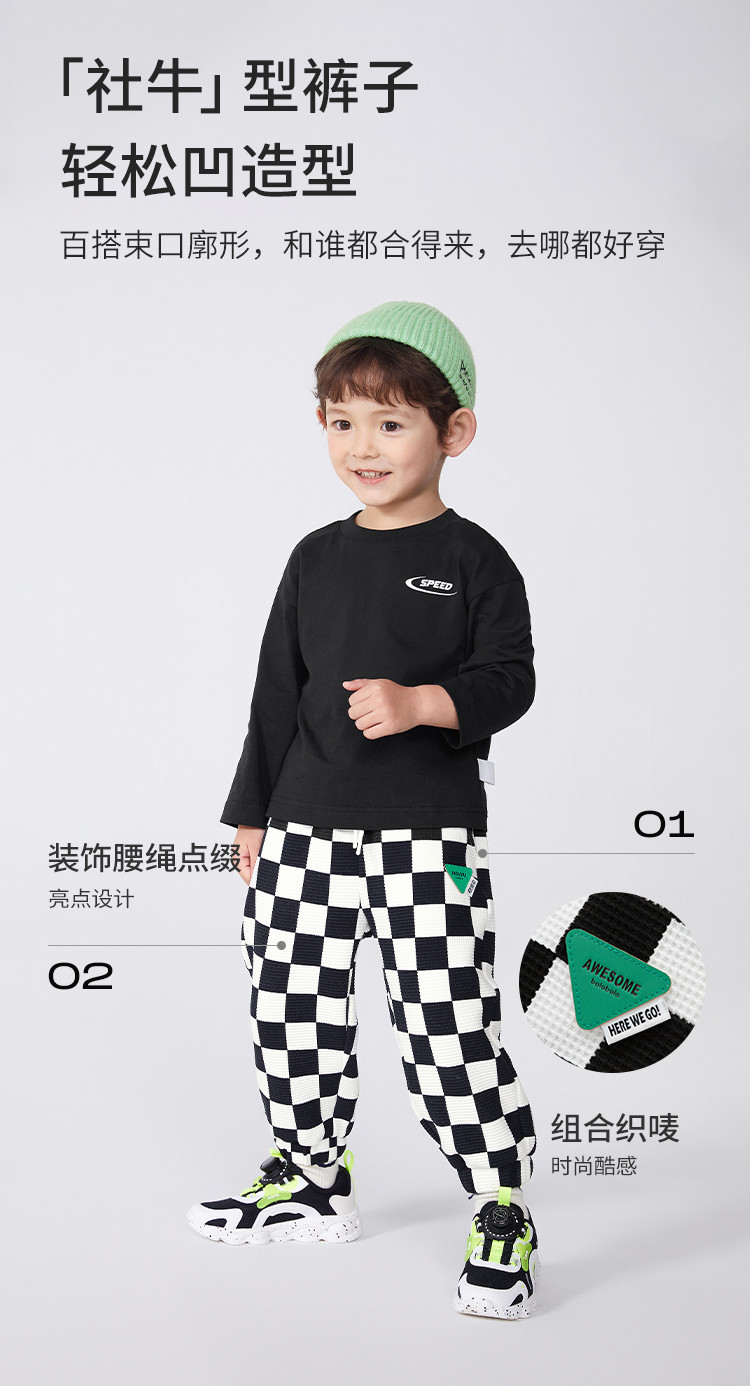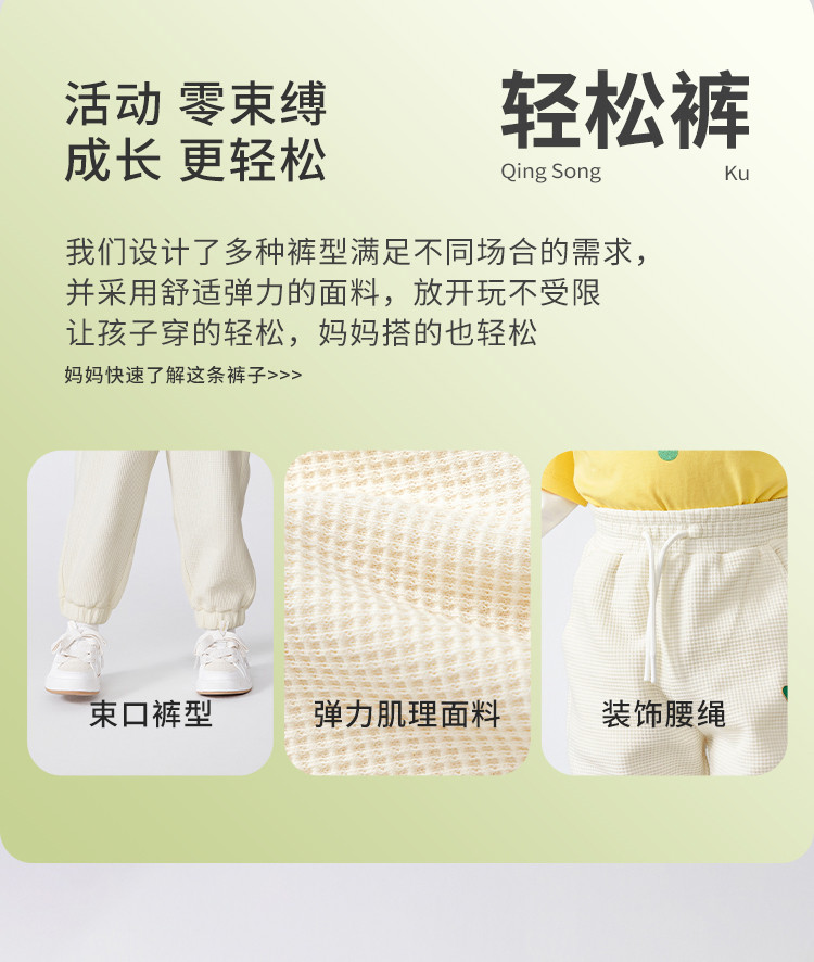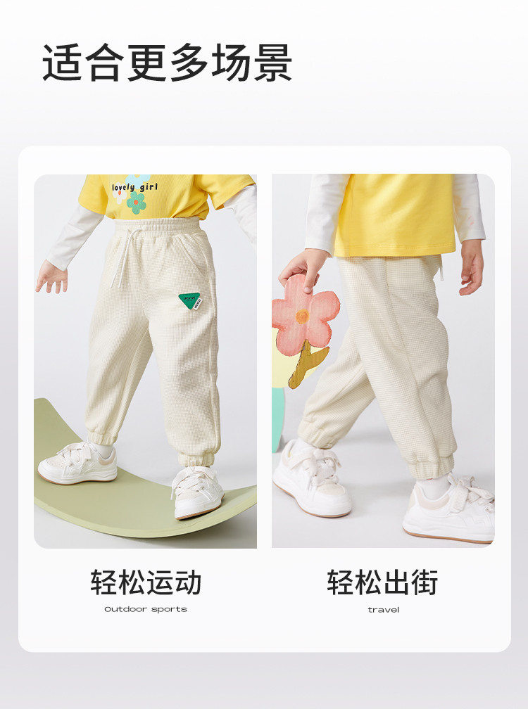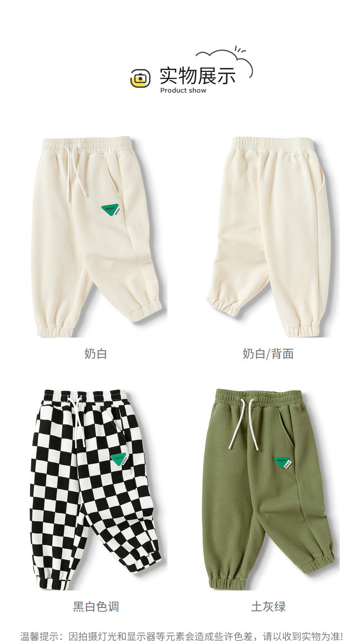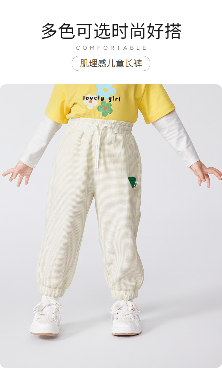 商品名称:华夫格童装弹力肌理面料女童儿童裤子男童宝宝长裤春秋小童休闲裤 514821