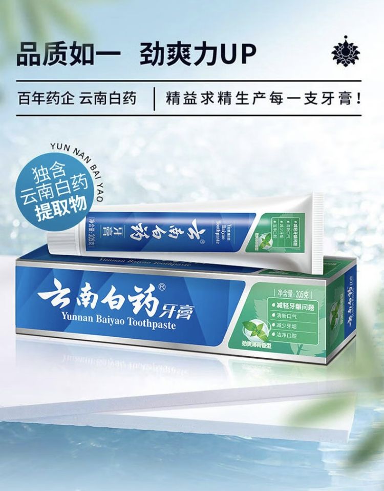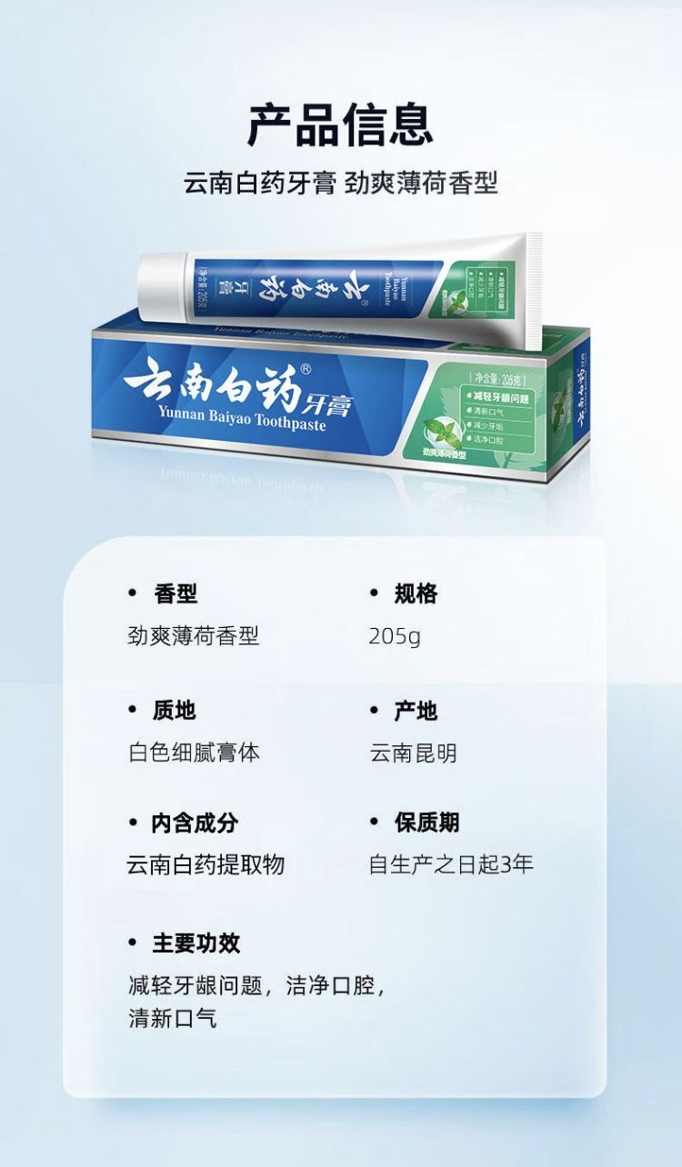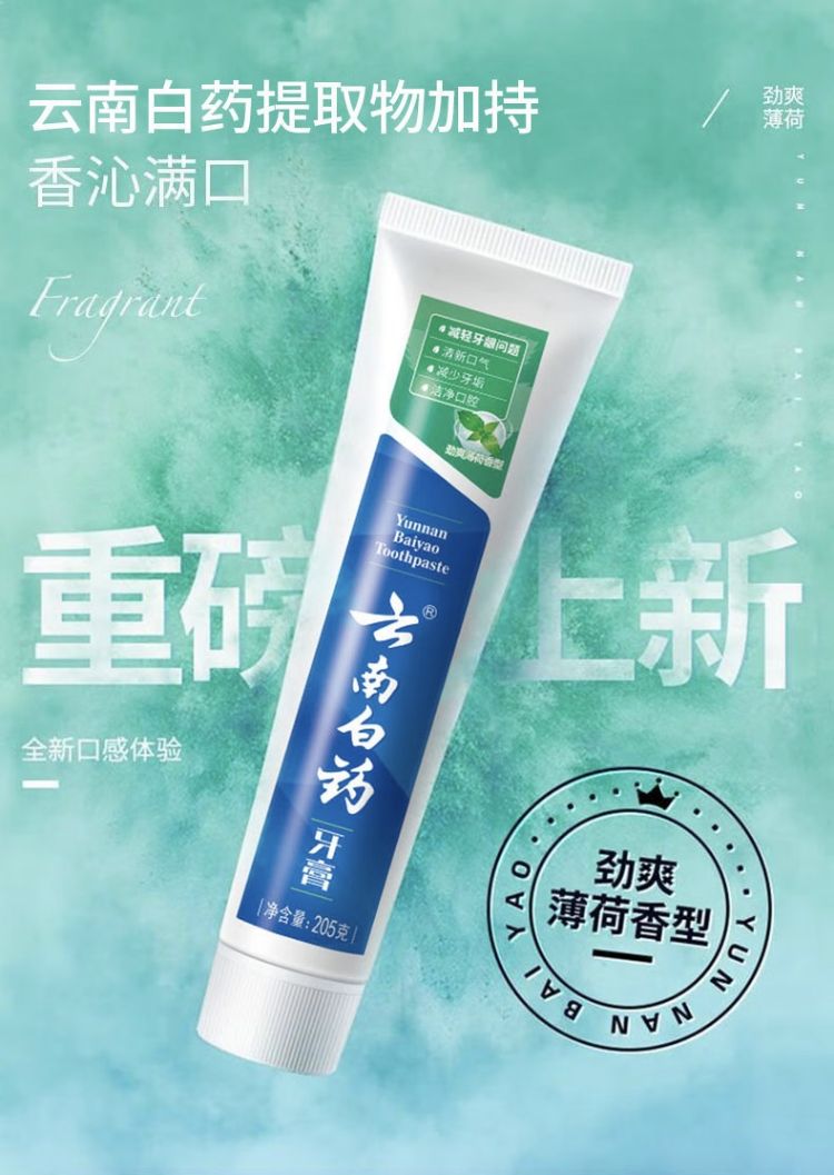商品名称:云南白药 牙膏 劲爽薄荷香型 205g