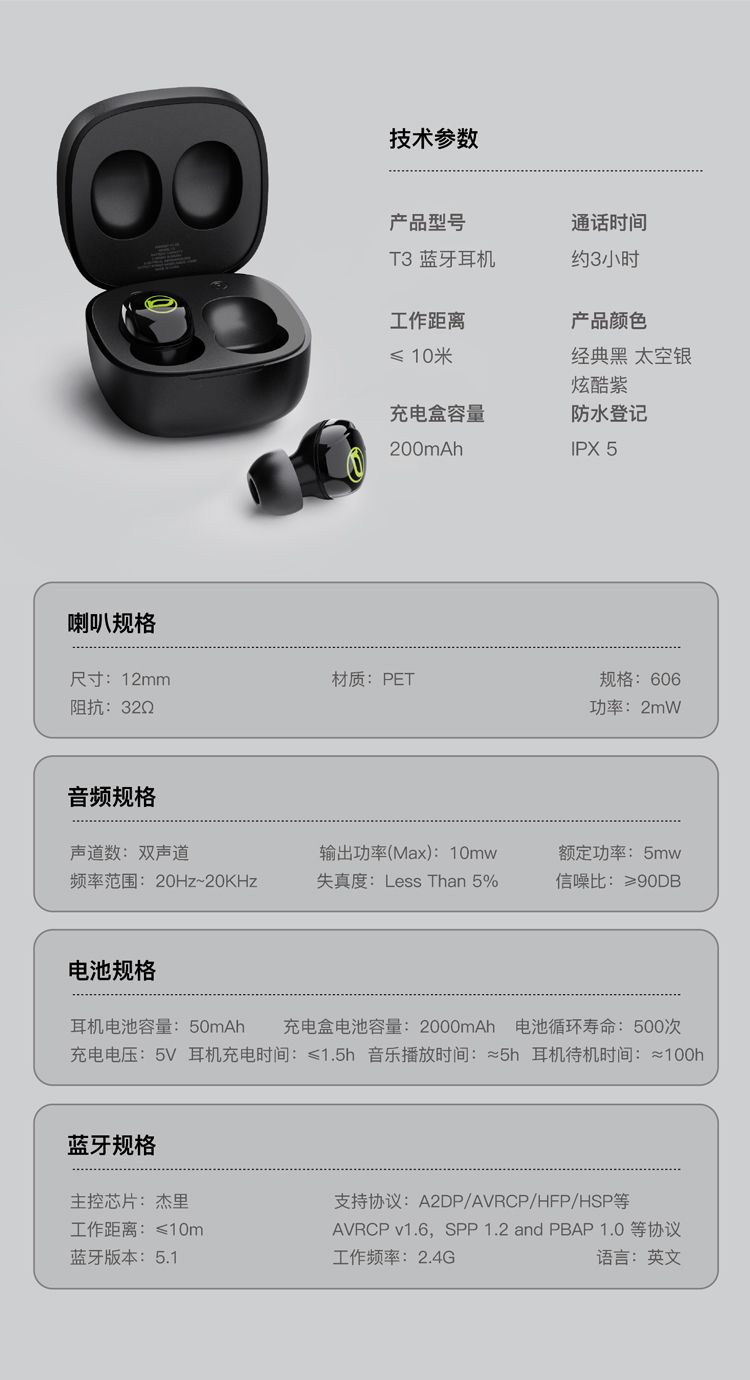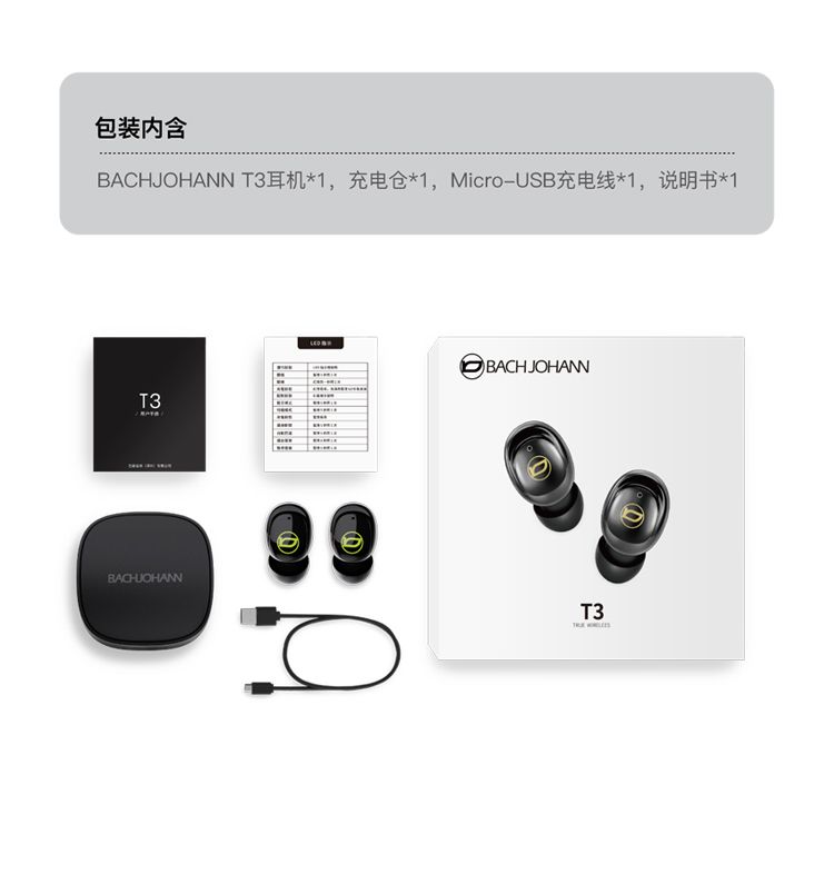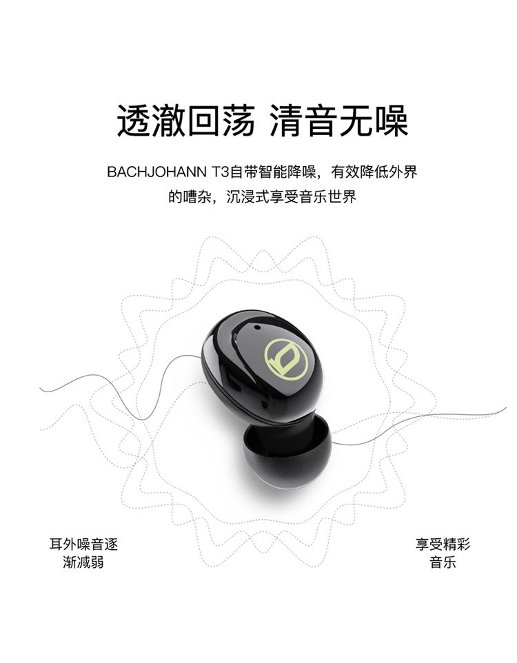 商品名称:bach johann 德国巴赫T3电镀真无线蓝牙耳机入耳式运动跑步隐形超长待机续航适用于华为苹果平板等蓝牙通用T3