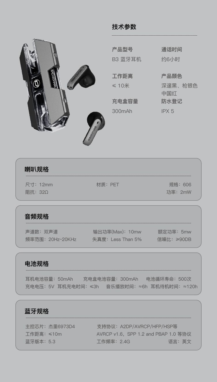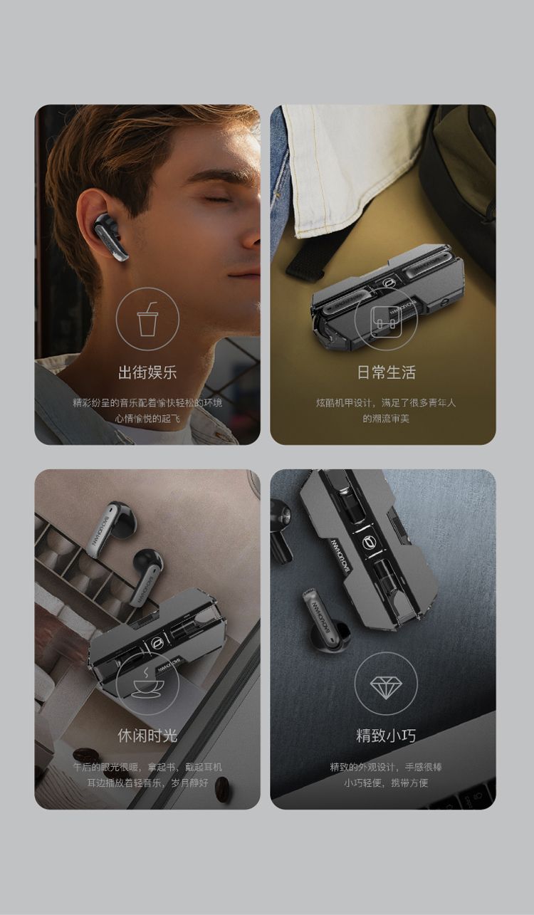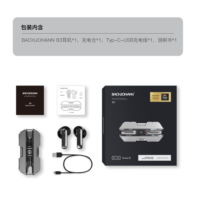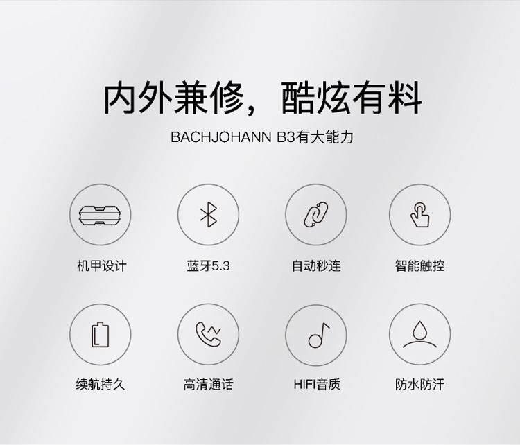 商品名称:bach johann 德国巴赫B3真无线蓝牙耳机机甲风设计无线蓝牙耳机运动防水智能降噪 适用于华为苹果平板等