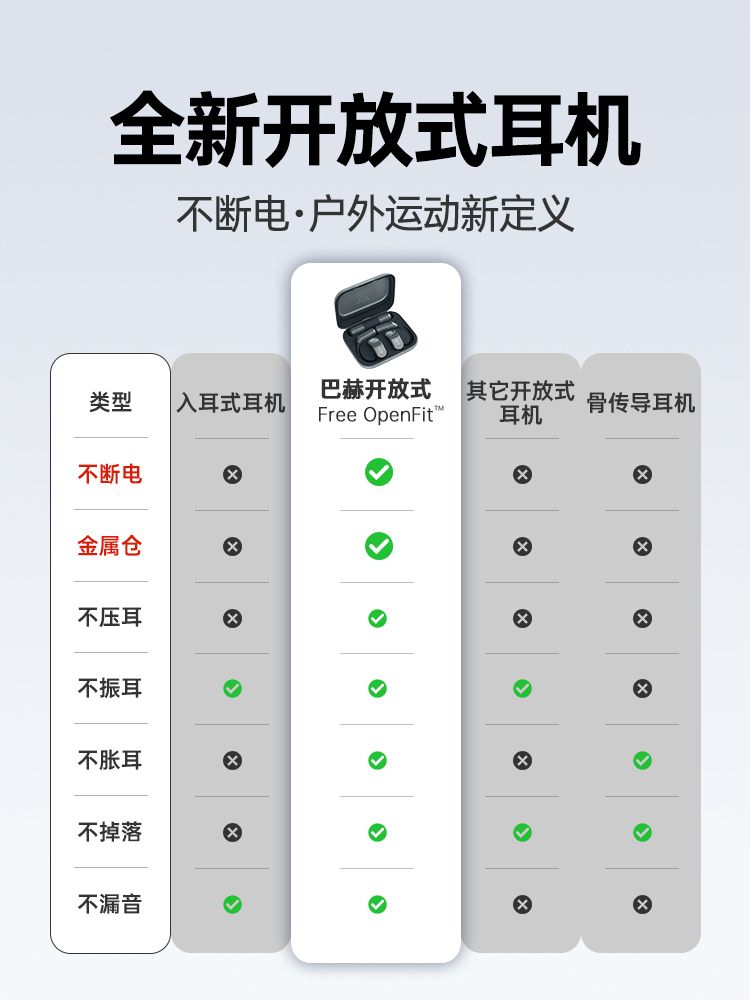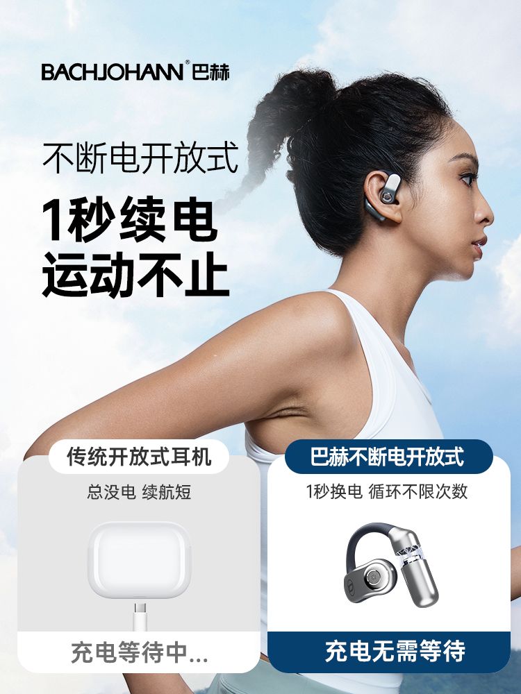 商品名称:巴赫Free OpenFit不断电开放式蓝牙耳机不入耳大师音质骑行跑步运动挂耳式耳机适用华为苹果BACH08