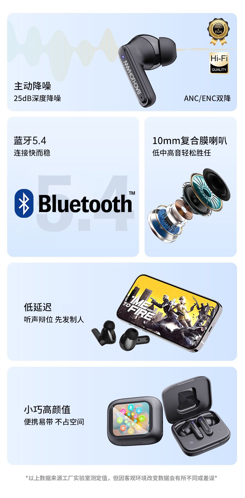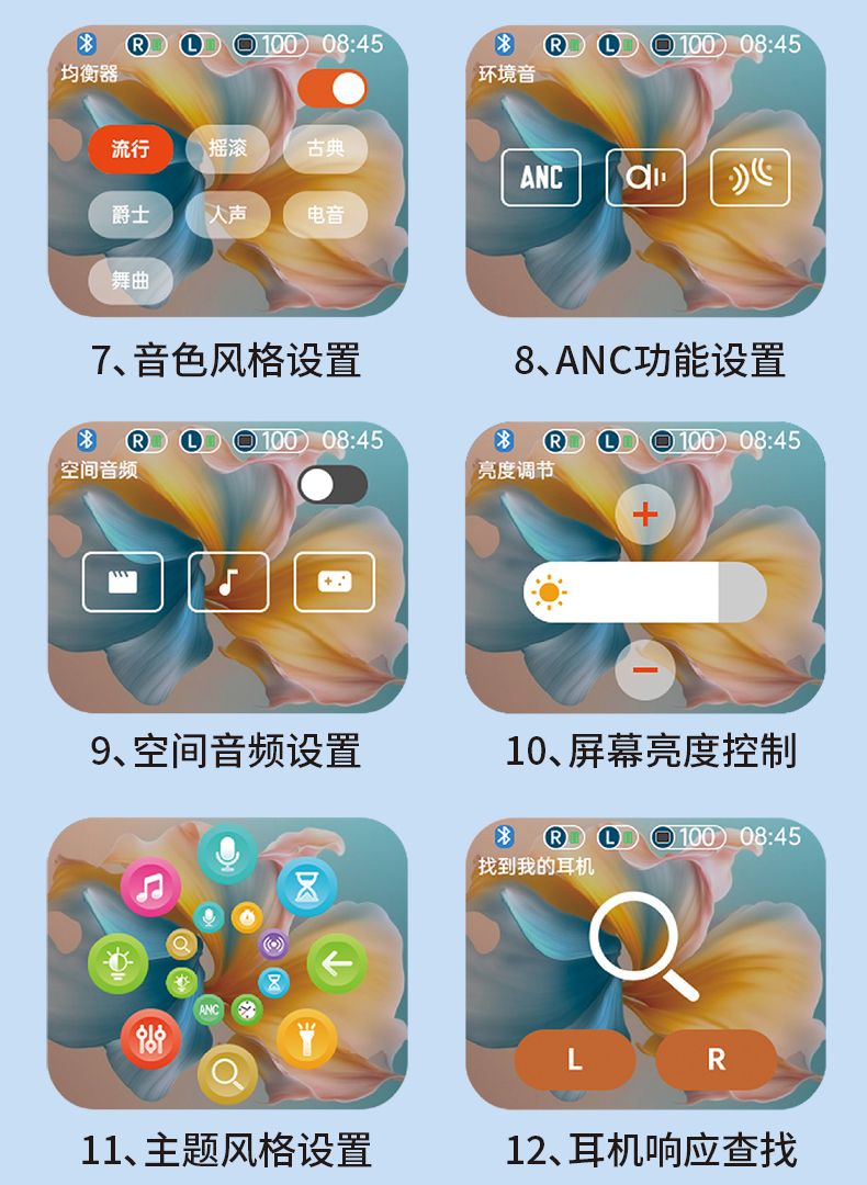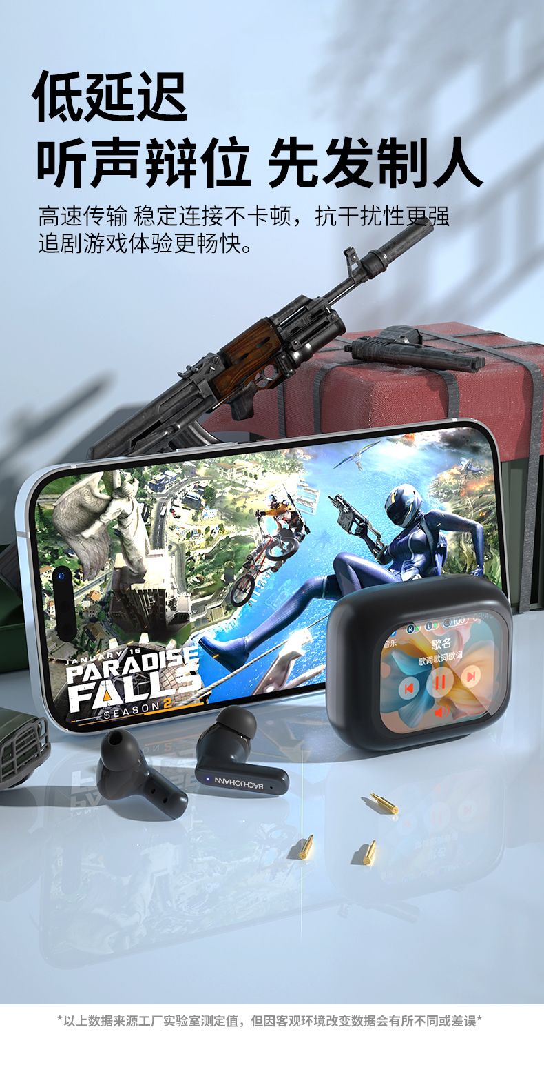 bach johann 巴赫约翰T8无线蓝牙耳机主动降噪多功能彩屏TWS跑步运动入耳式商务休闲防水防汗手机平板通用