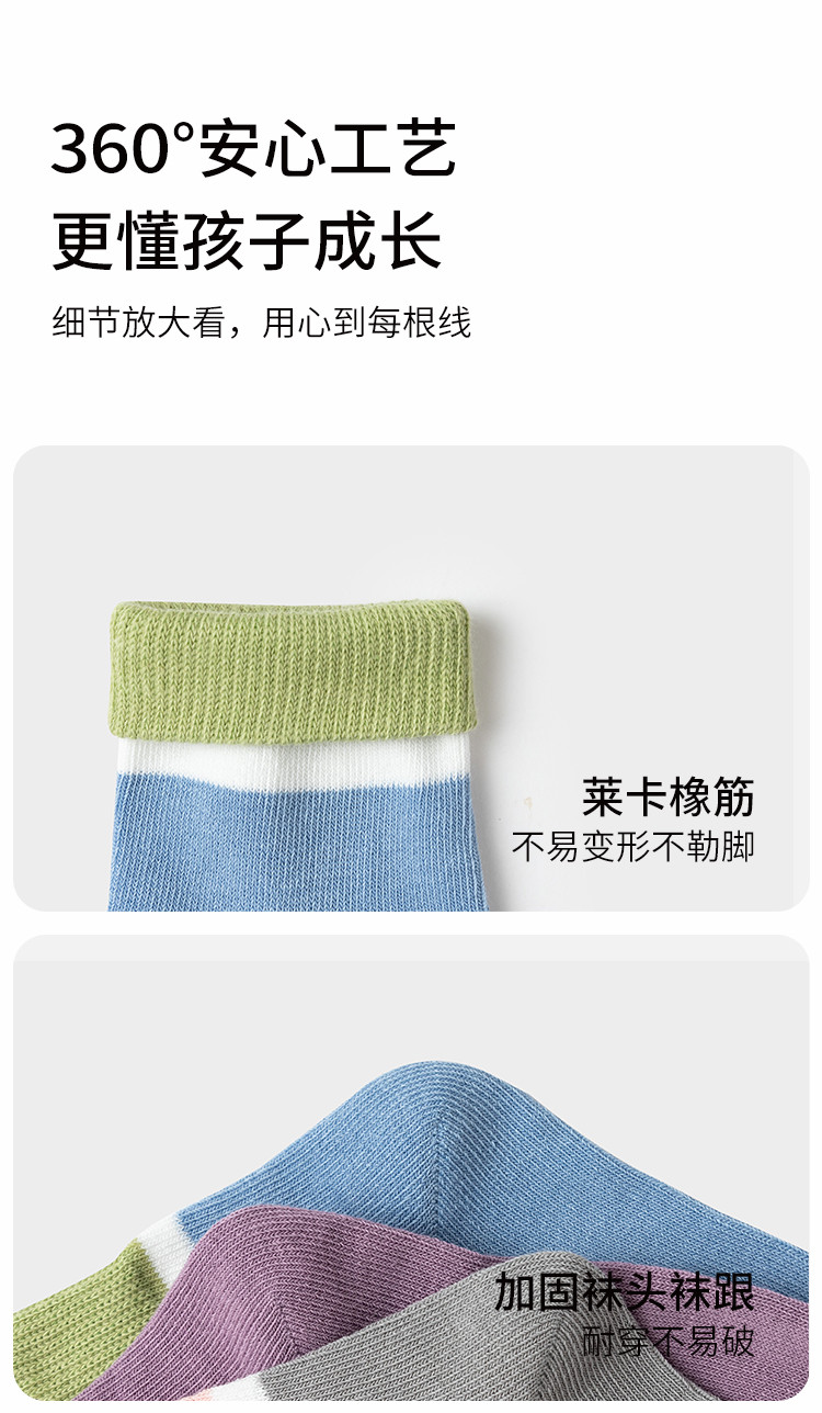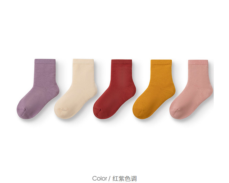 商品名称:简约不勒脚五双装袜子男童女童透气吸汗棉袜儿童秋季宝宝中大童 942277