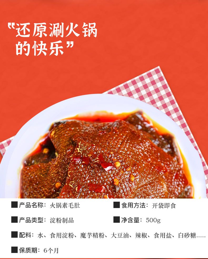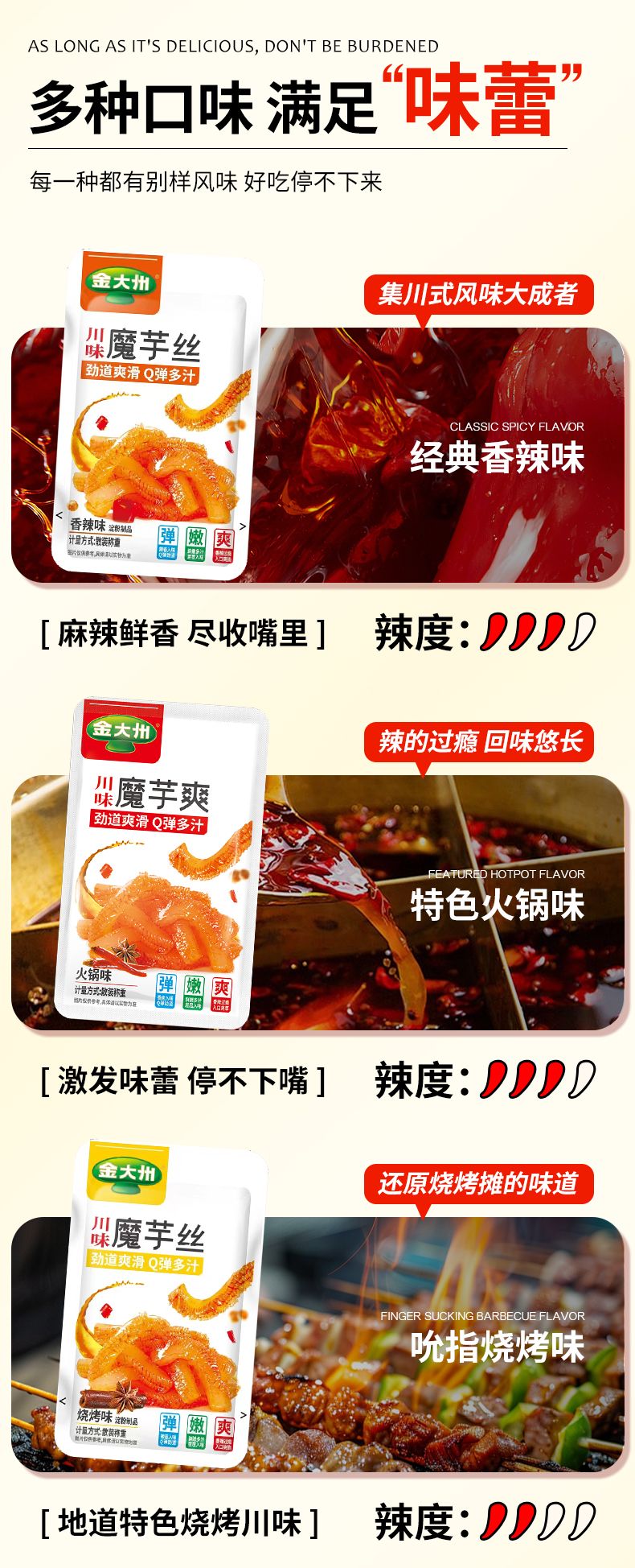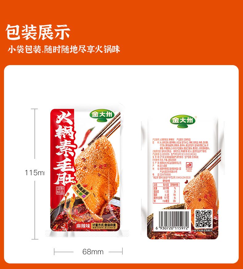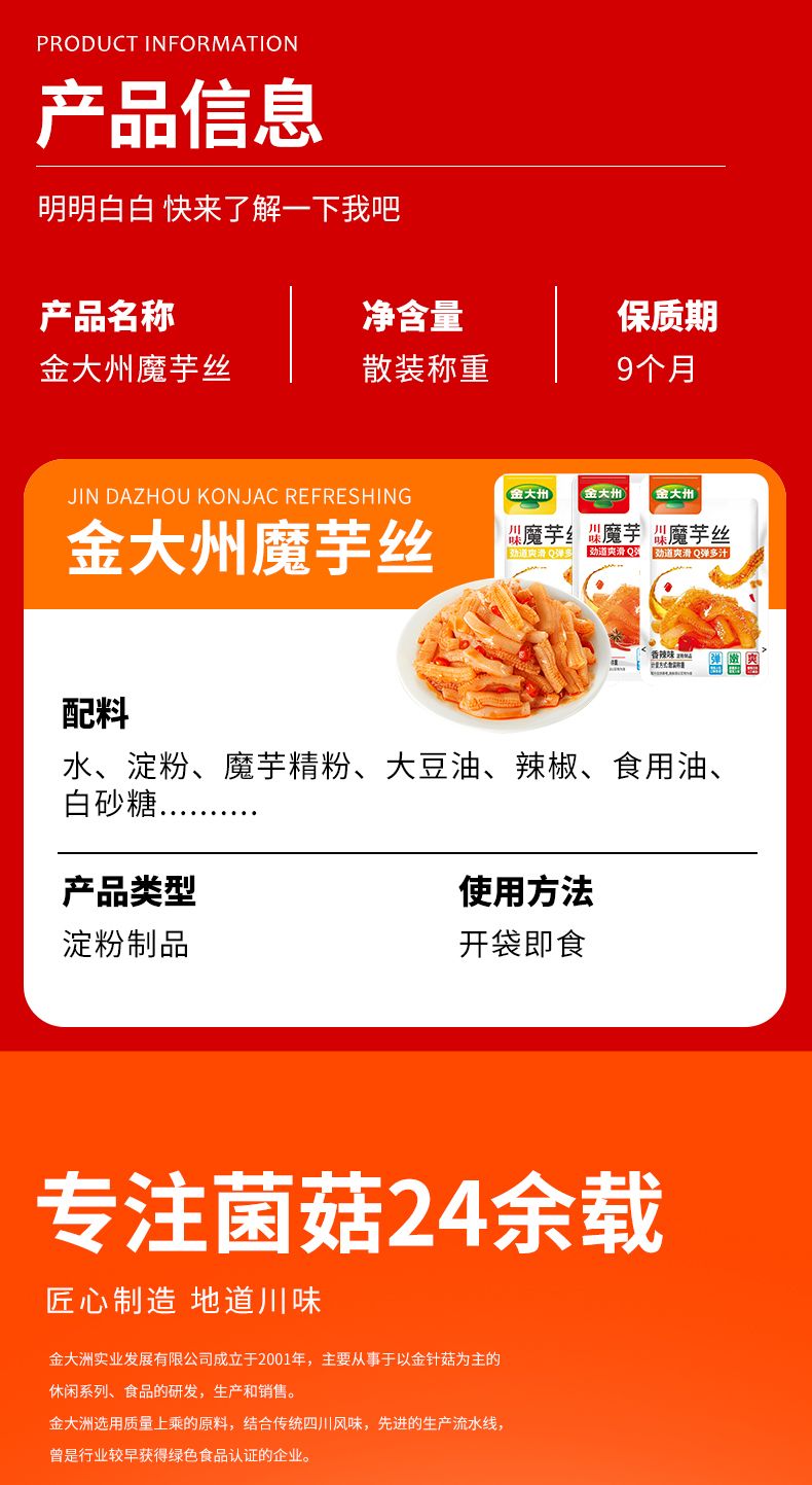 香辣味金针菇20g*10包+麻辣素毛肚10克*40包+香辣魔芋丝10g*50包