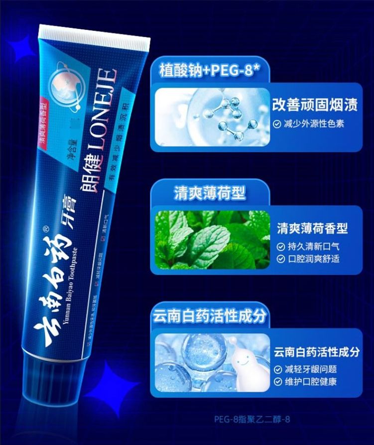 商品名称:云南白药 朗健牙膏 清爽薄荷型 180g