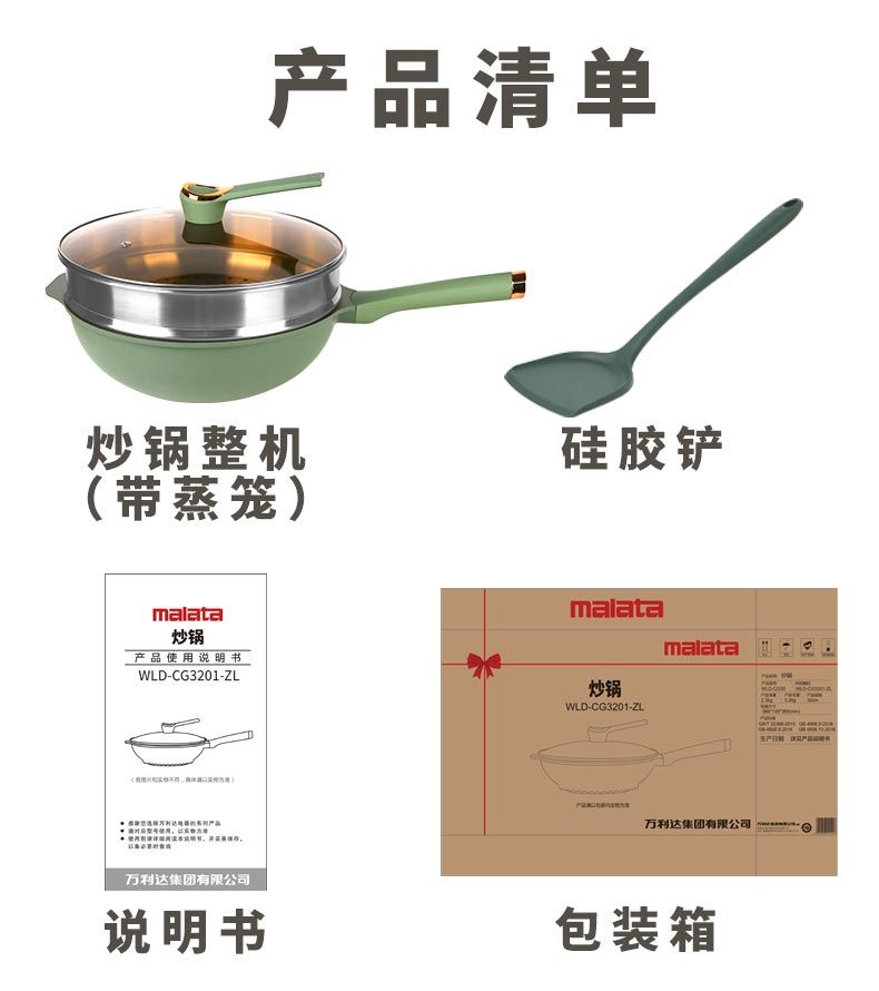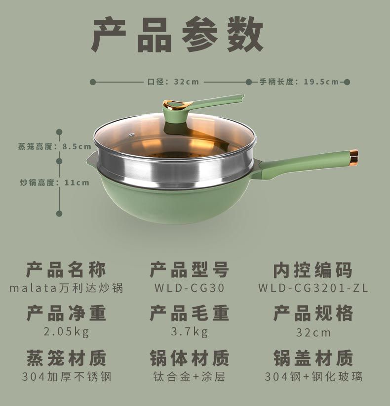 商品名称:Malata万利达钛合金不沾炒锅WLD-CG3201-ZL