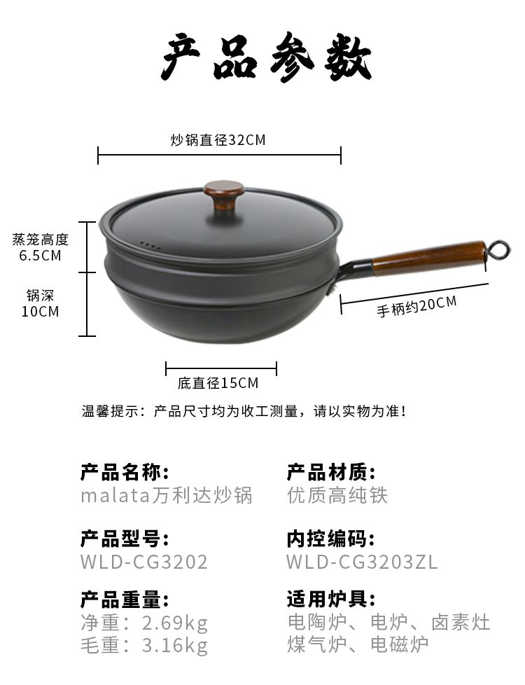 商品名称:Malata万利达极铁陶瓷不粘锅WLD-CG3203ZL