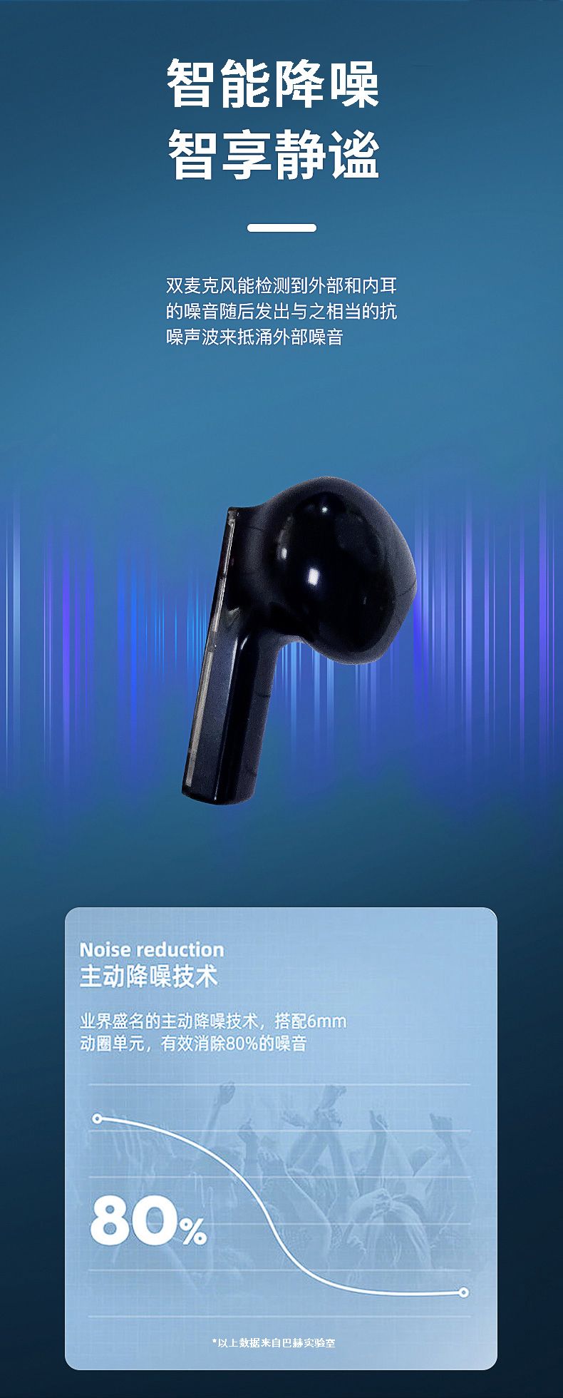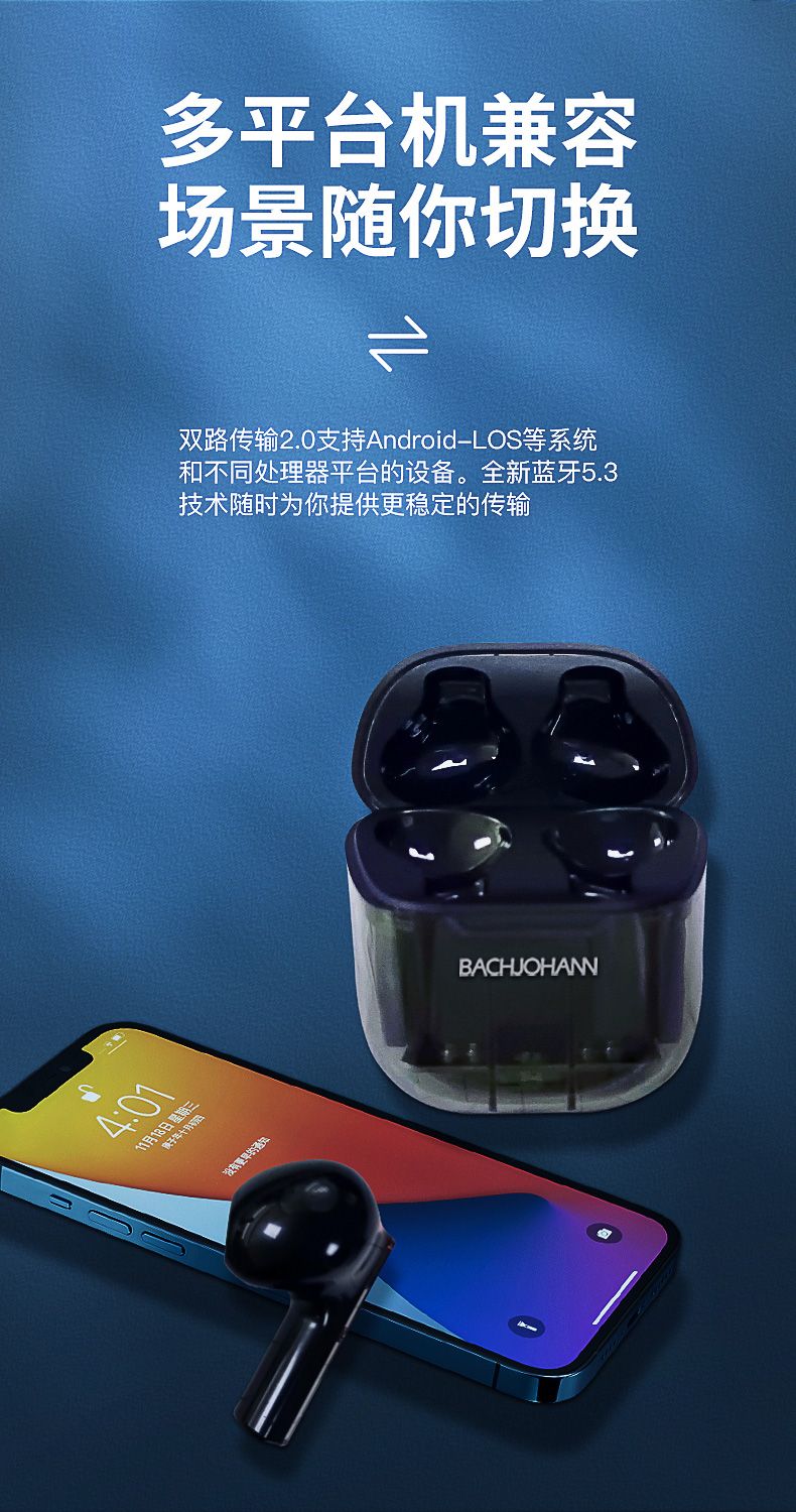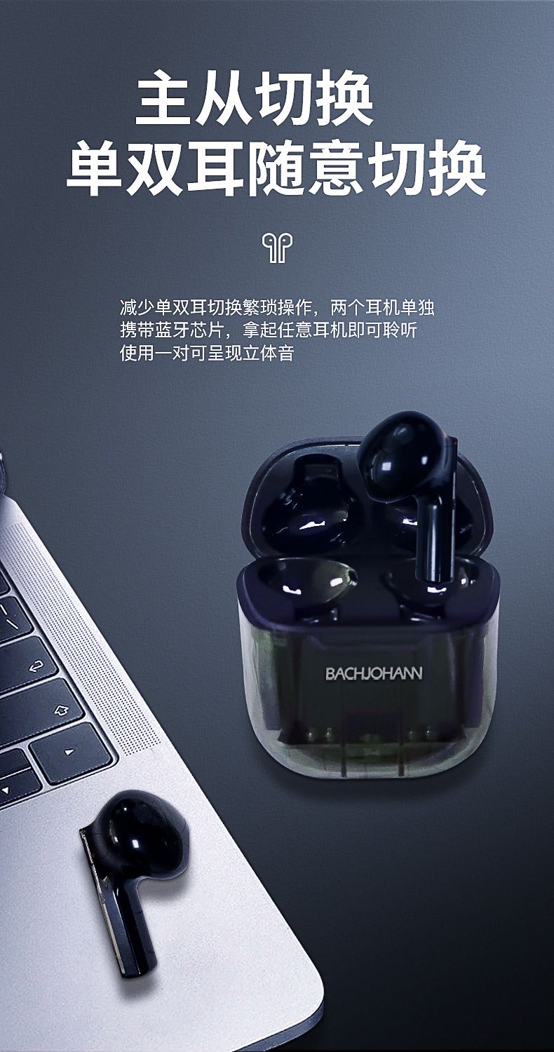 商品名称:bach johann 德国巴赫T6智能降噪真无线蓝牙耳机运动 适用于华为苹果平板等蓝牙通用 黑色