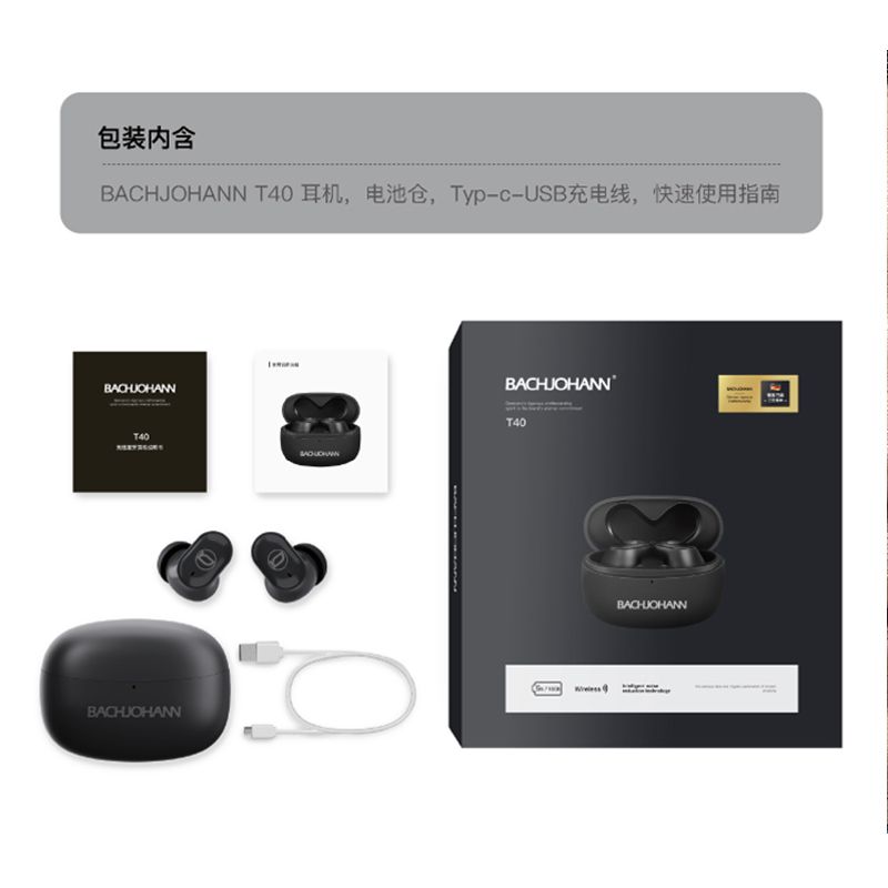 商品名称:bach johann德国巴赫T40无线蓝牙耳机双耳入耳式降噪高音质重低音华为vivo苹果通用