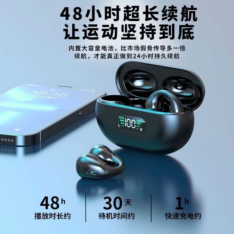 bach johann巴赫Q80无线蓝牙耳机双耳耳夹式不入耳式降噪高音质重低音适用于华为苹果平板等蓝牙通用 蓝牙通用 黑