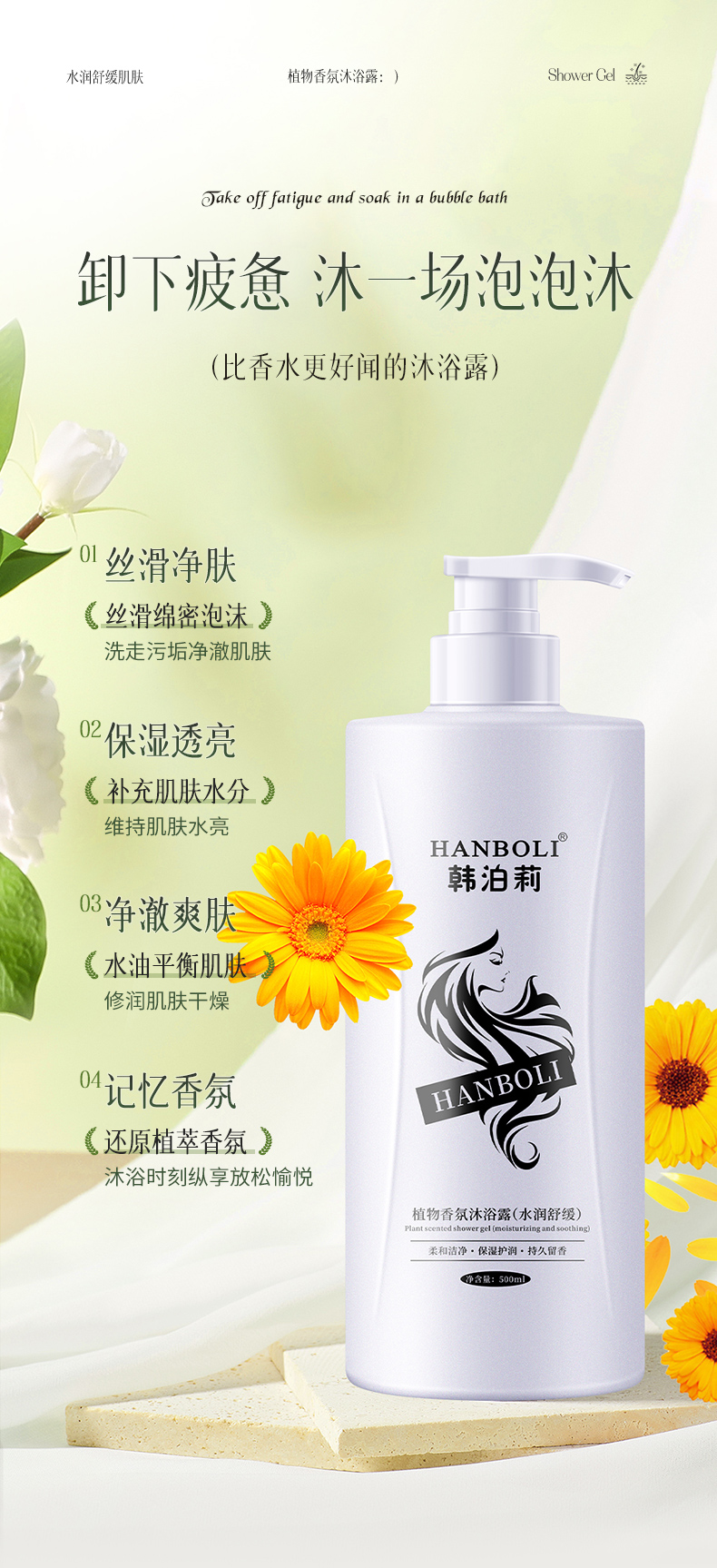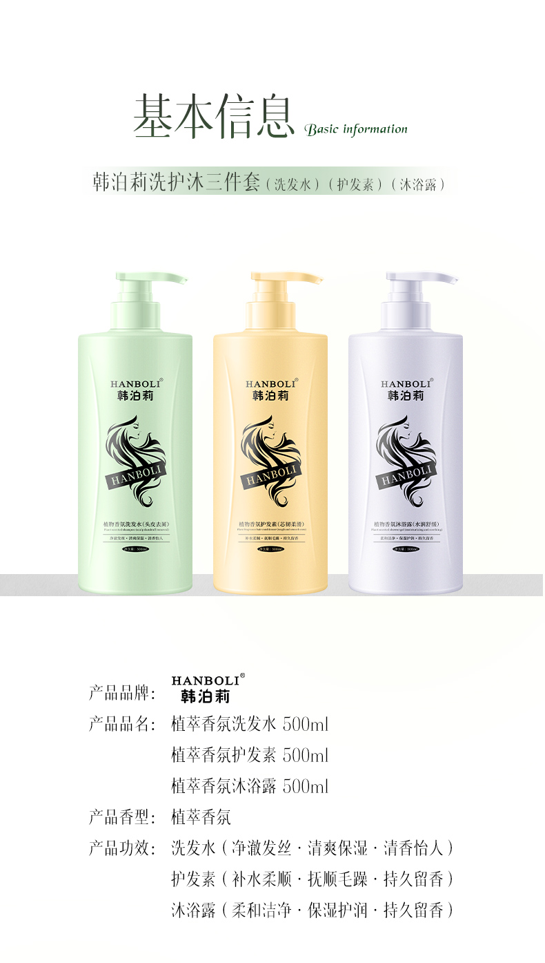 商品名称:【屈臣氏爆款】韩泊莉植物香氛洗护沐清爽保湿洗发水补水柔顺护发素香氛沐浴露500ml