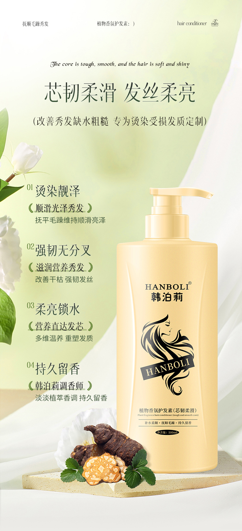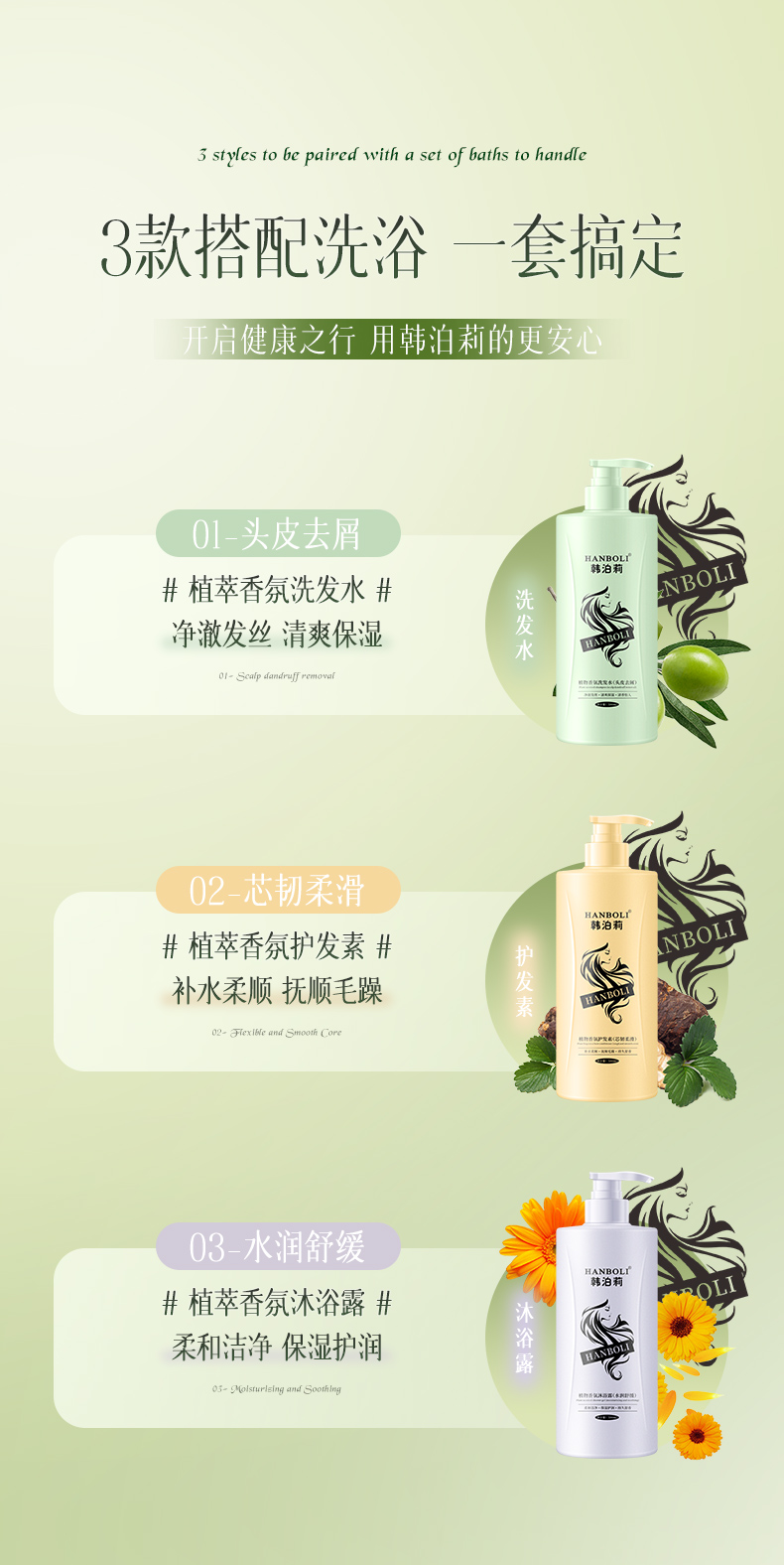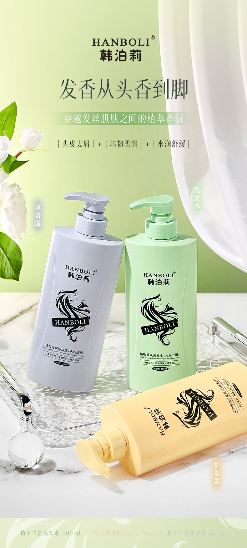 【屈臣氏爆款】韩泊莉植物香氛洗护沐清爽保湿洗发水补水柔顺护发素香氛沐浴露500ml