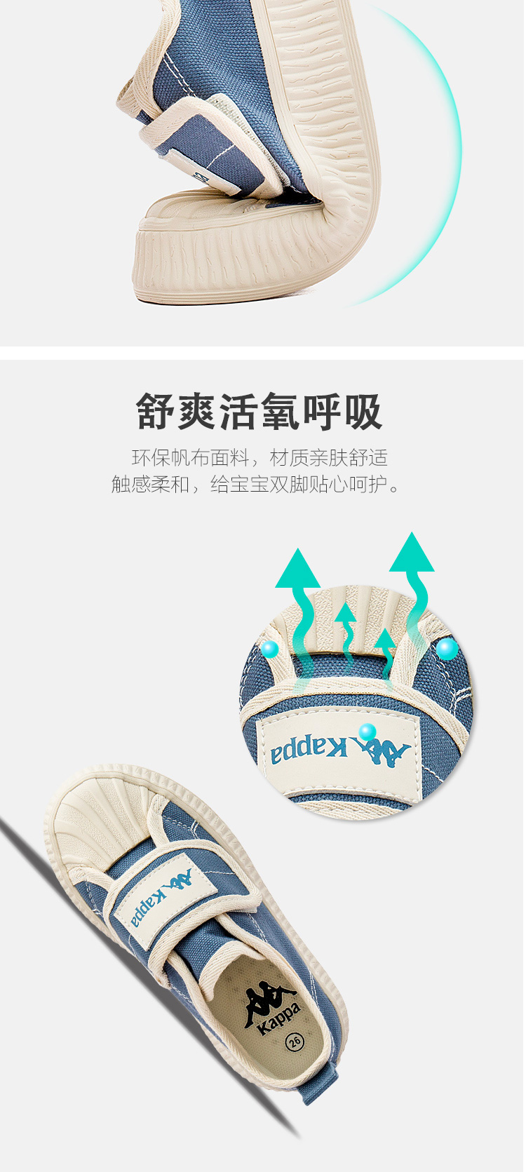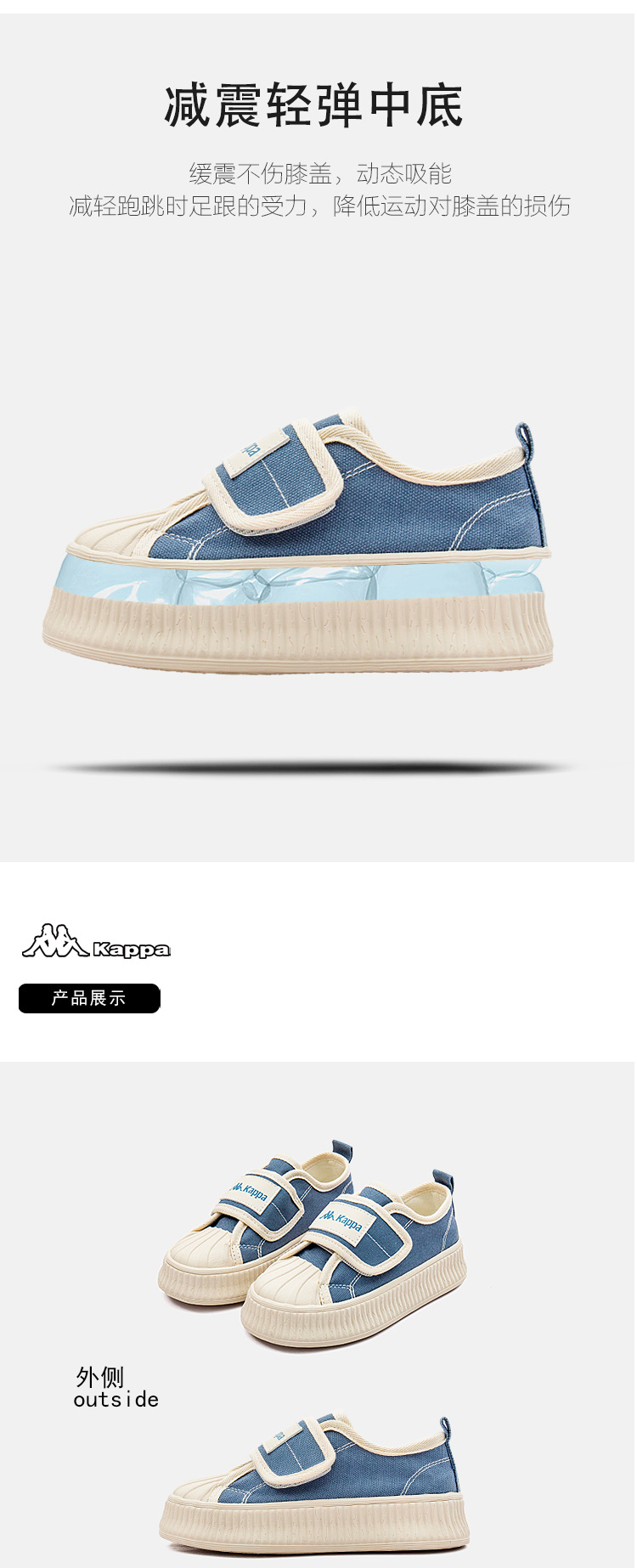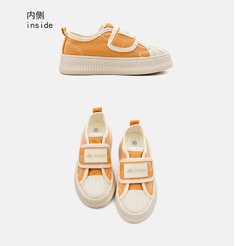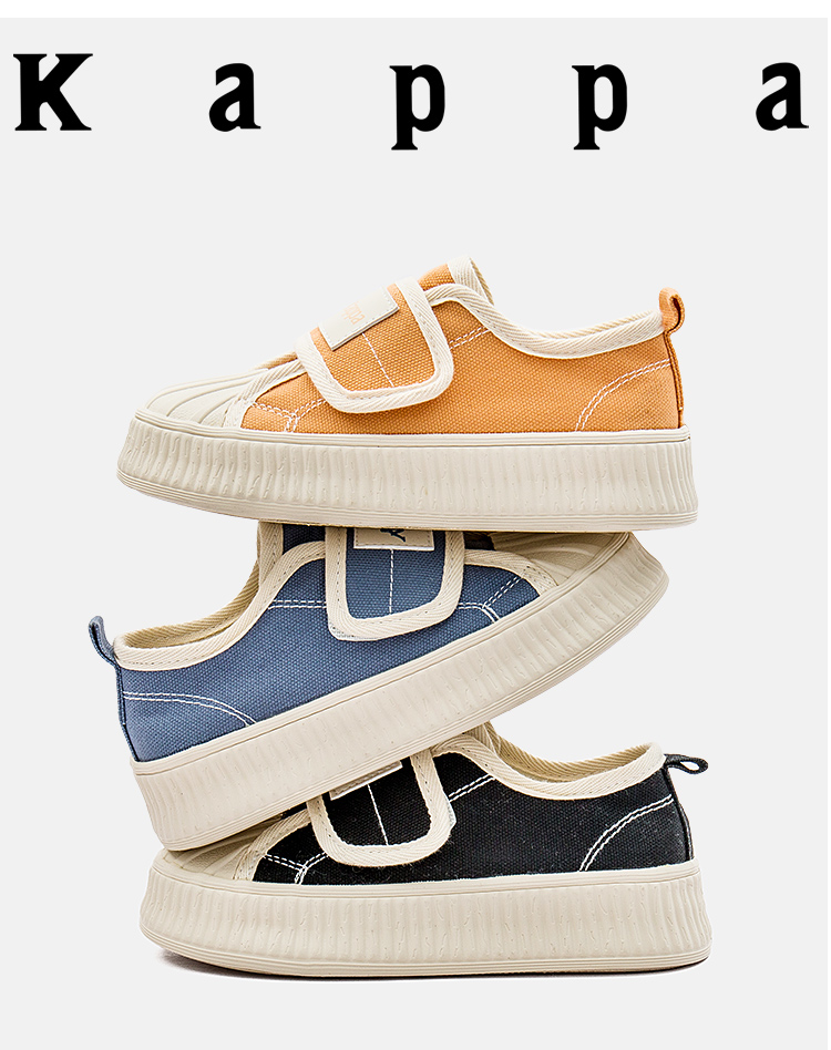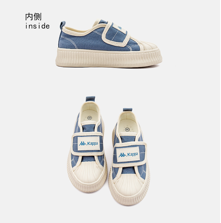 商品名称:kappa kids卡帕童鞋帆布鞋低帮魔术贴中大童板鞋贝壳头男童女童休闲防滑耐磨透气男鞋子