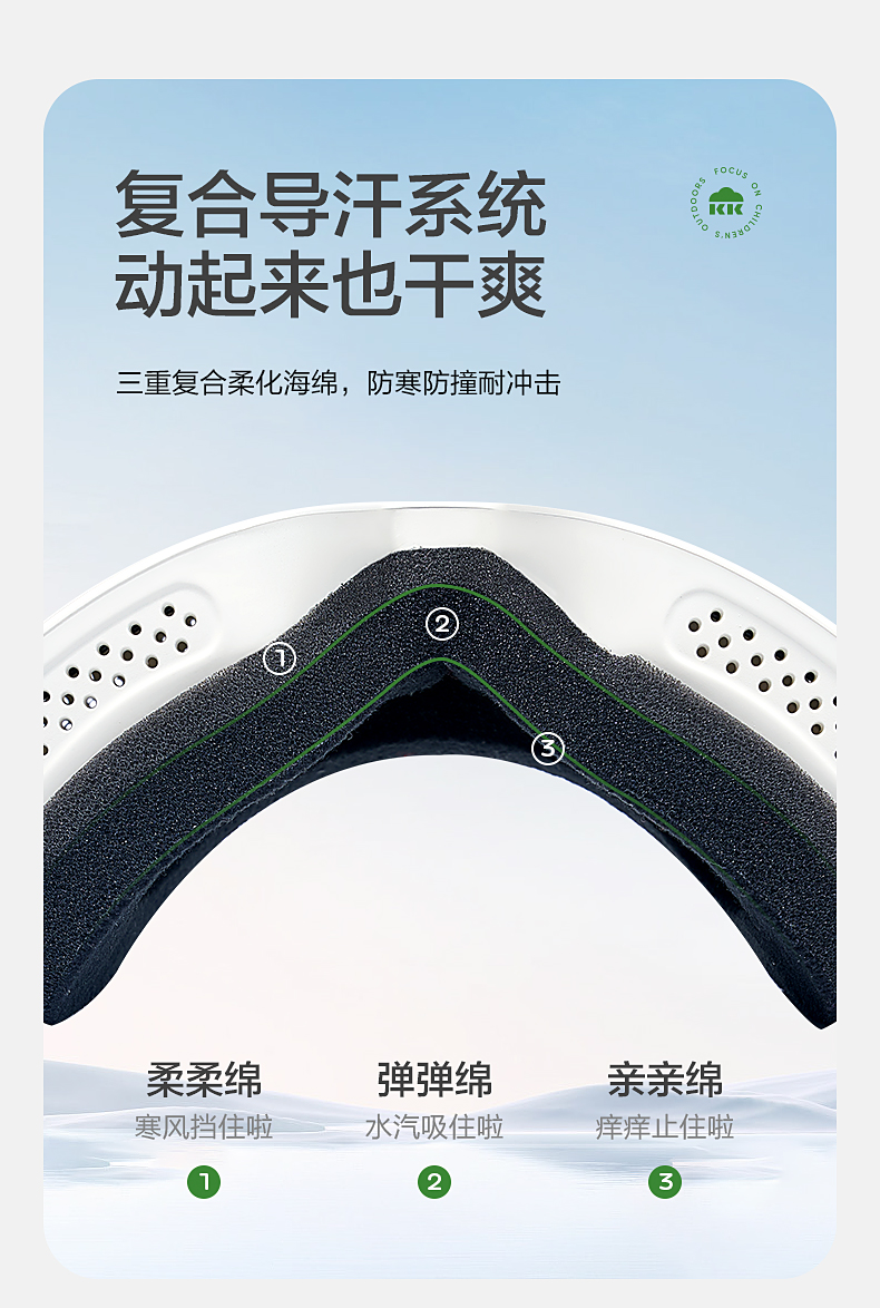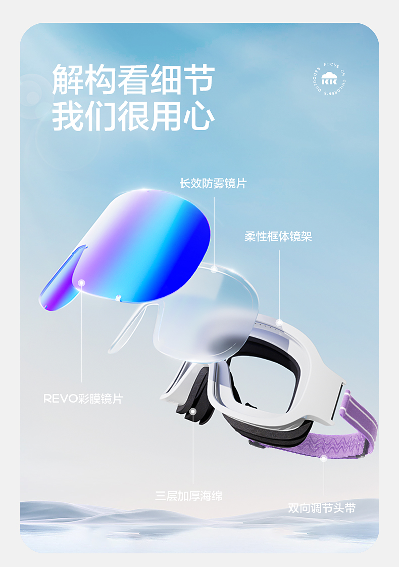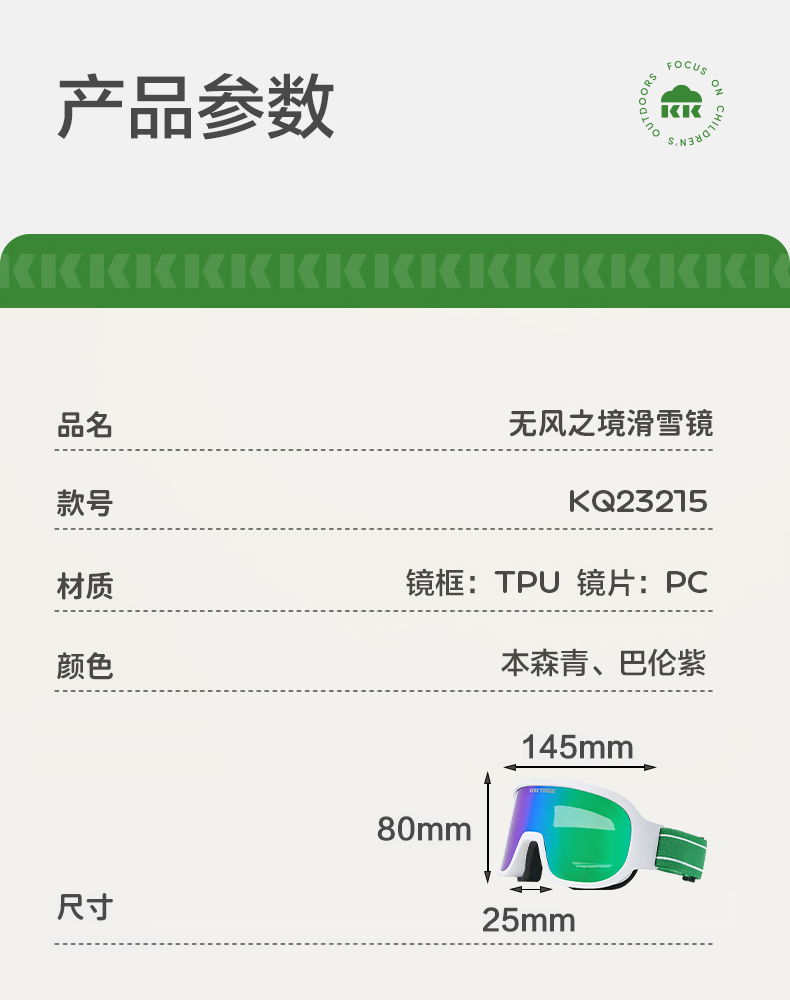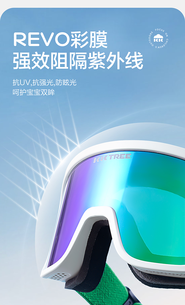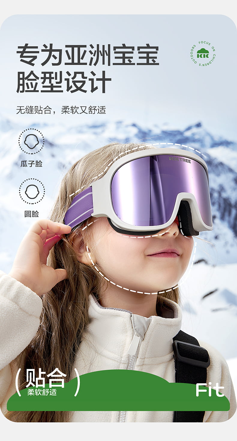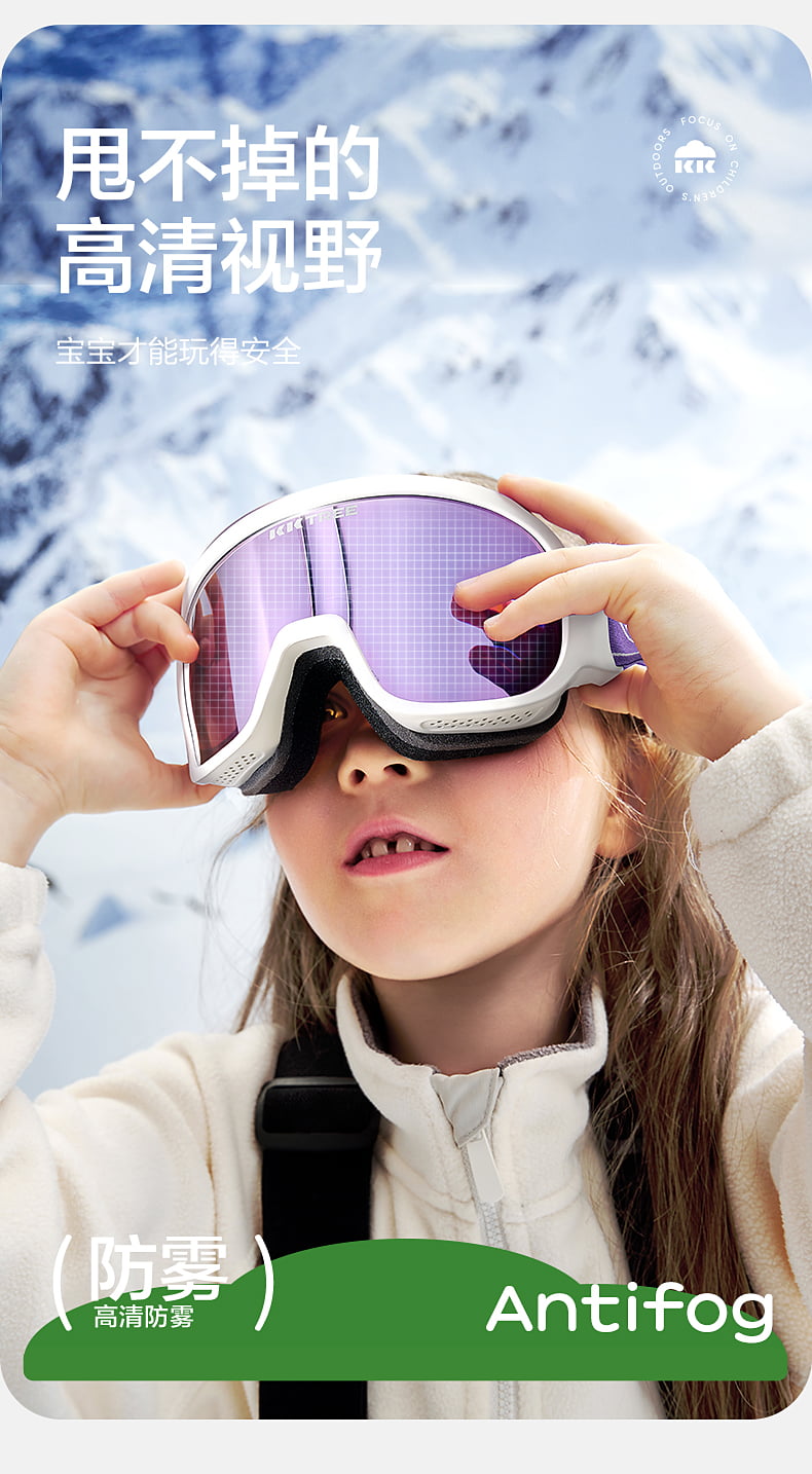 商品名称:【直供】KK树儿童滑雪镜双层防雾护目镜可卡近视防雪雪地登山防紫外线无风之境