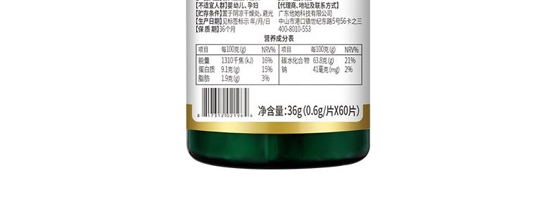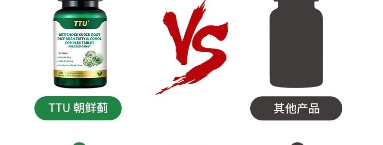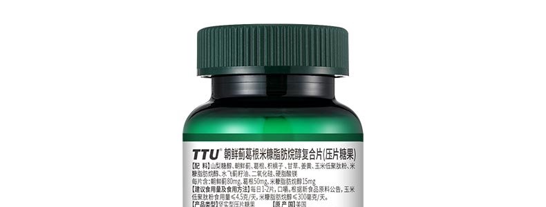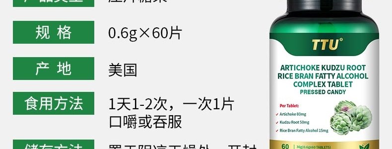 商品名称:美国 TTU 朝鲜蓟葛根米糠脂肪烷醇复合压片糖果 60片/瓶