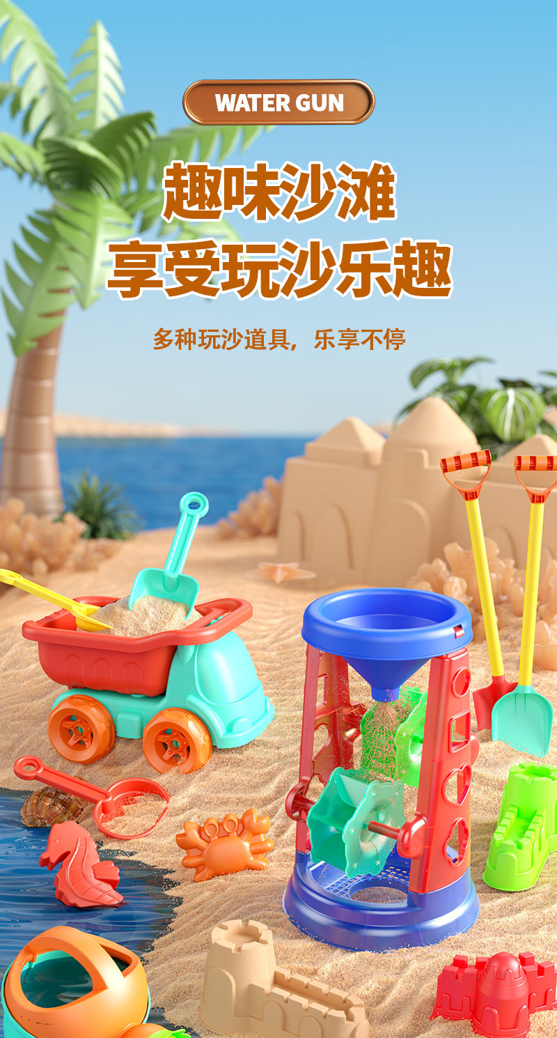 商品名称:儿童沙滩玩具车宝宝戏水挖沙土工具沙漏铲子桶海边玩沙子套装沙池 27件套