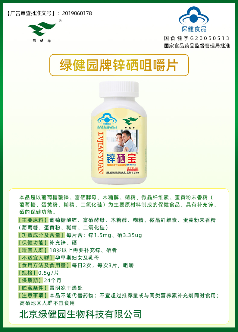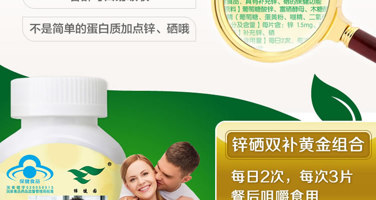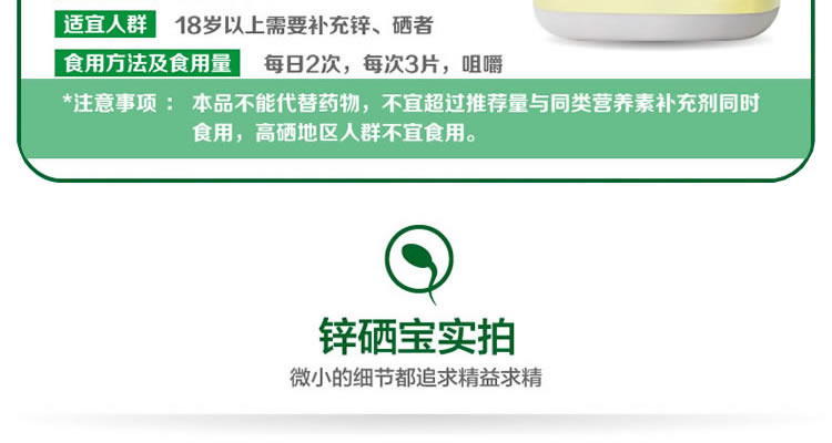 商品名称:绿健园 锌硒宝 锌硒咀嚼片提高男士成人男性女性锌硒片备孕精子活性补锌补硒0.5gx100片