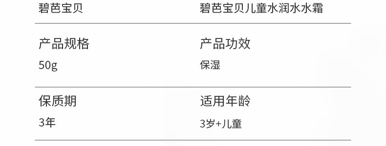 商品名称:碧芭宝贝 儿童水润水水霜 50g 3岁+