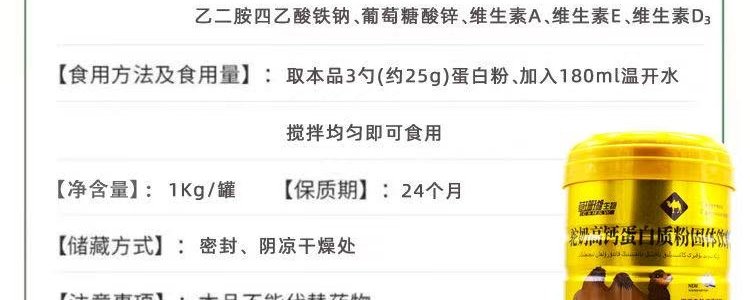 商品名称:睿博士 草珊瑚生物驼奶高钙蛋白质粉 1kg