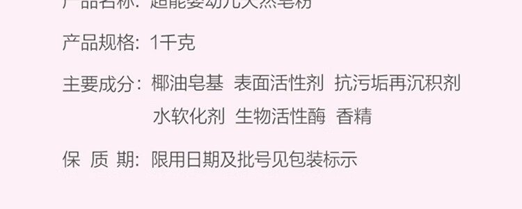 商品名称:超能 婴幼儿天然皂粉 1kgx2袋