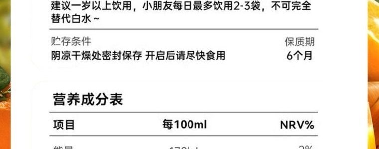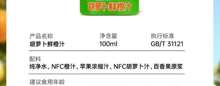 商品名称:金豆芽 胡萝卜鲜橙汁 100ml*7袋