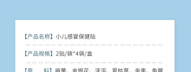 商品名称:优卡丹 小儿感冒保健贴 2贴/袋*4袋/盒 适合0岁以上