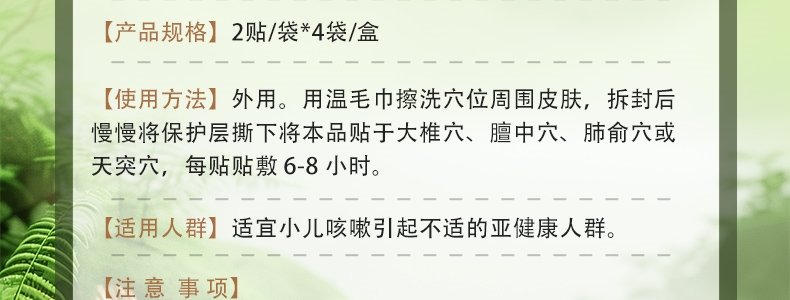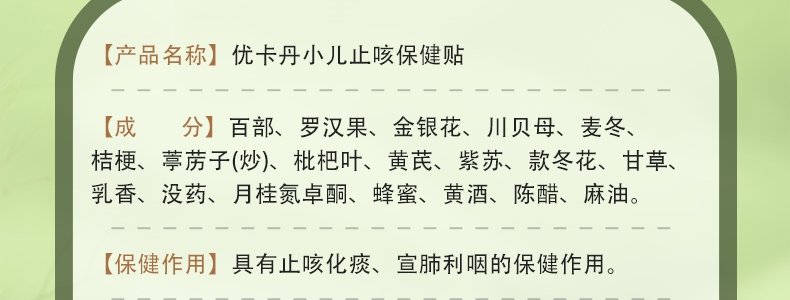 商品名称:优卡丹 小儿止咳保健贴 2贴/袋*4袋/盒 适合0岁以上