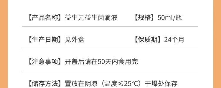 商品名称:木苏贝 益生元益生菌滴液 50ml