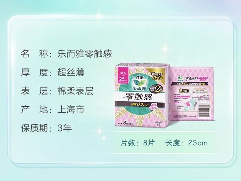 商品名称:Laurier/乐而雅 零触感特薄 夜用 300mm*8片