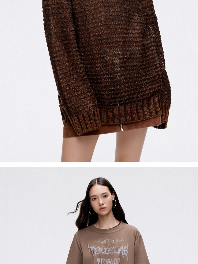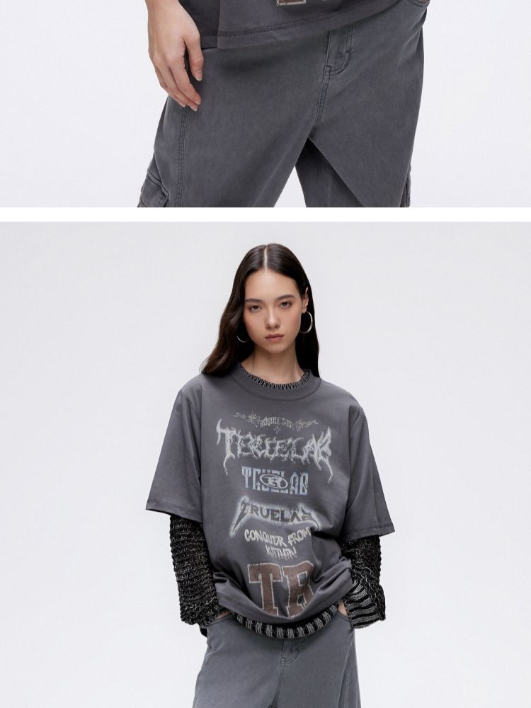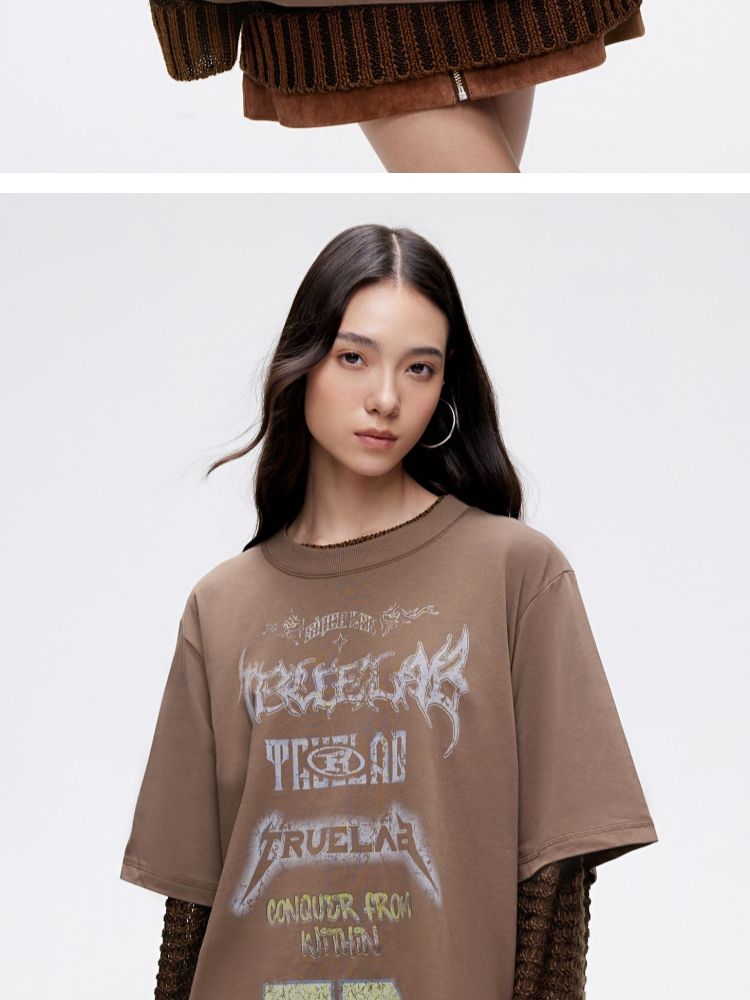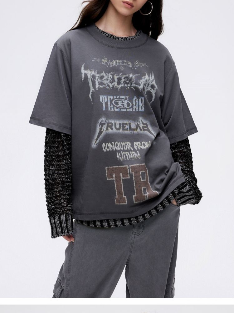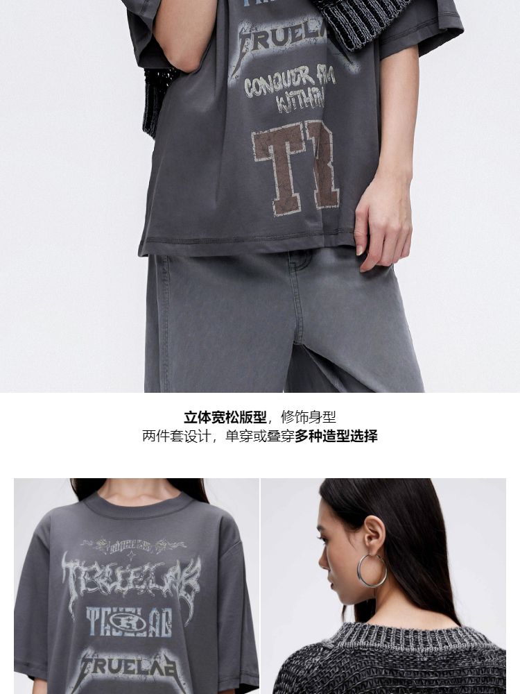 【两件套多种搭配】春季字母印花圆领套装针织衫女 208666