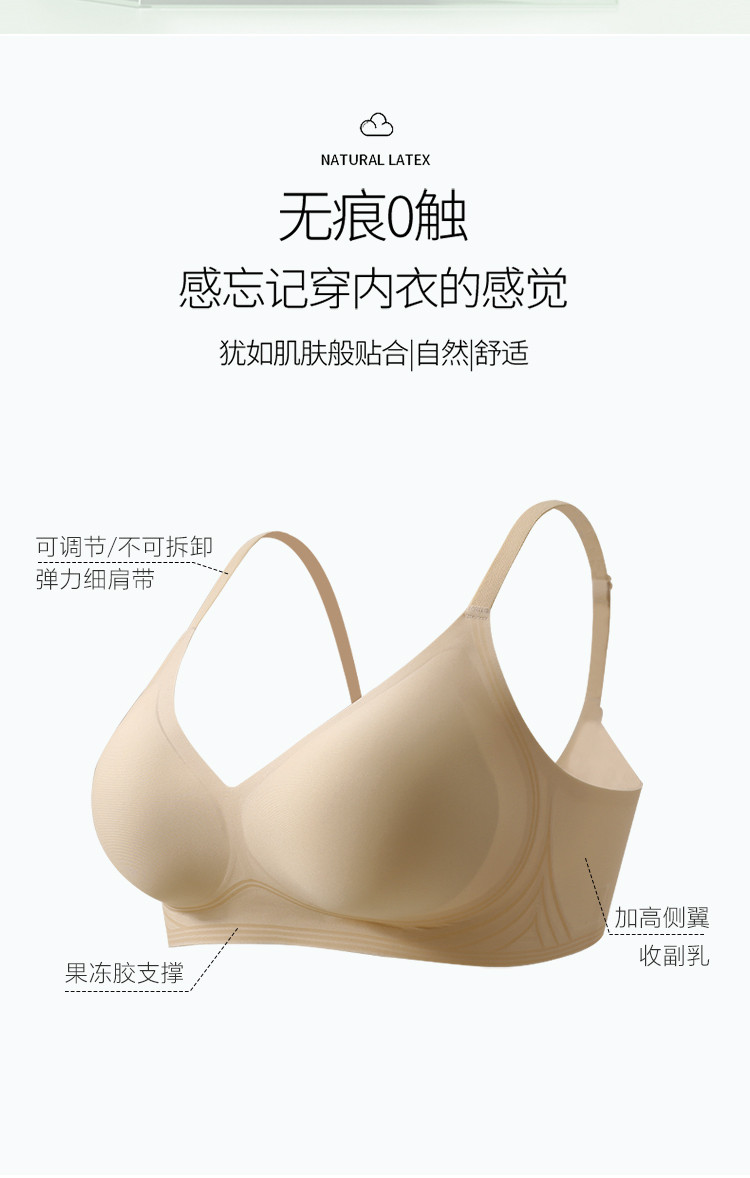 商品名称:【2025新含天然乳胶胸垫】无钢圈聚拢提拉防垂无痕内衣文胸罩 243870