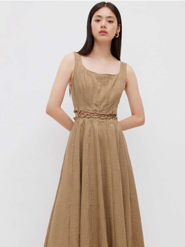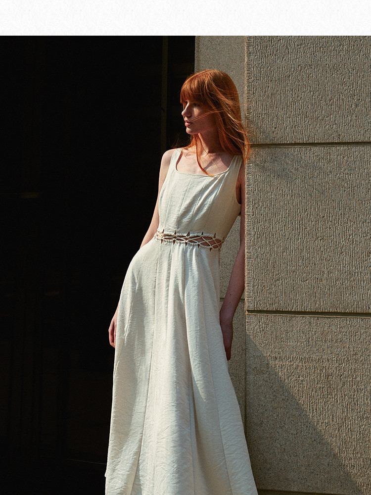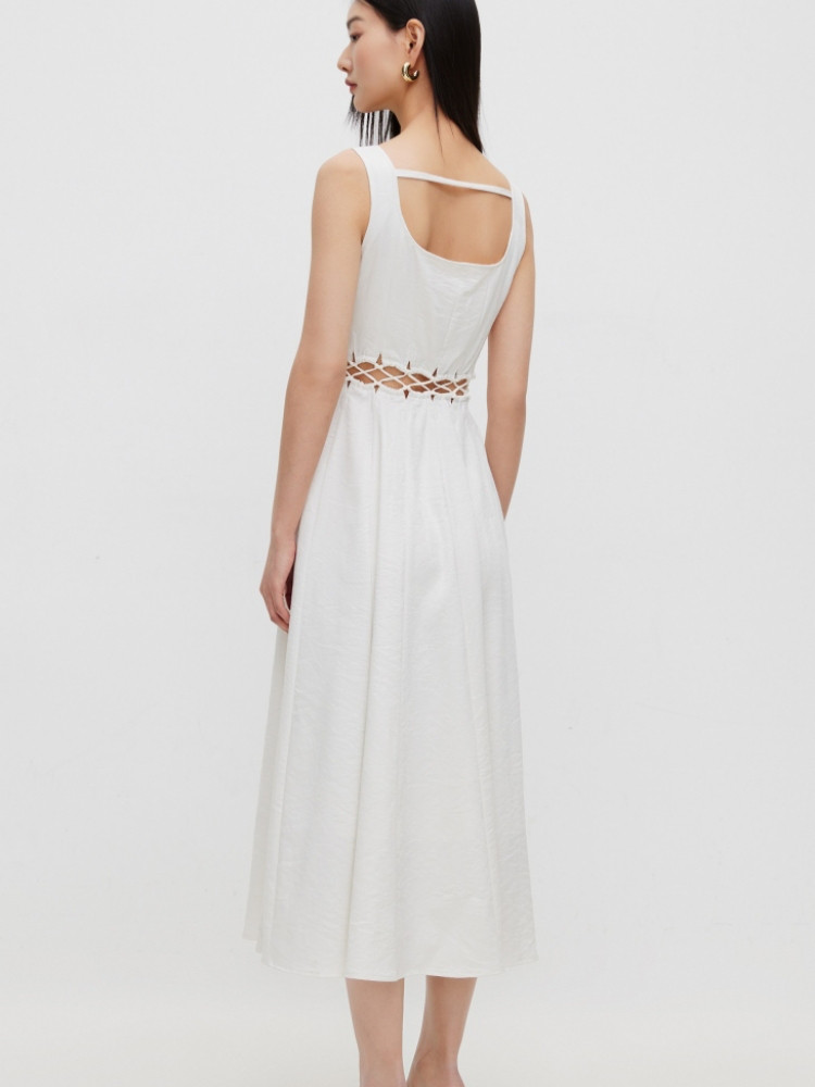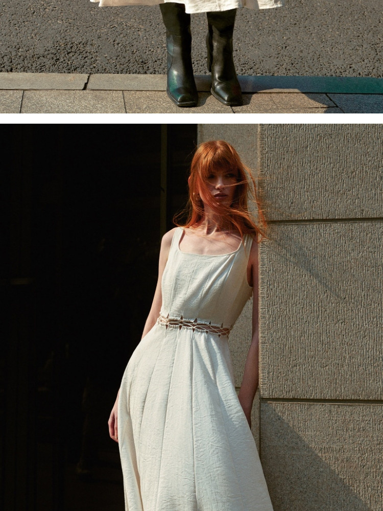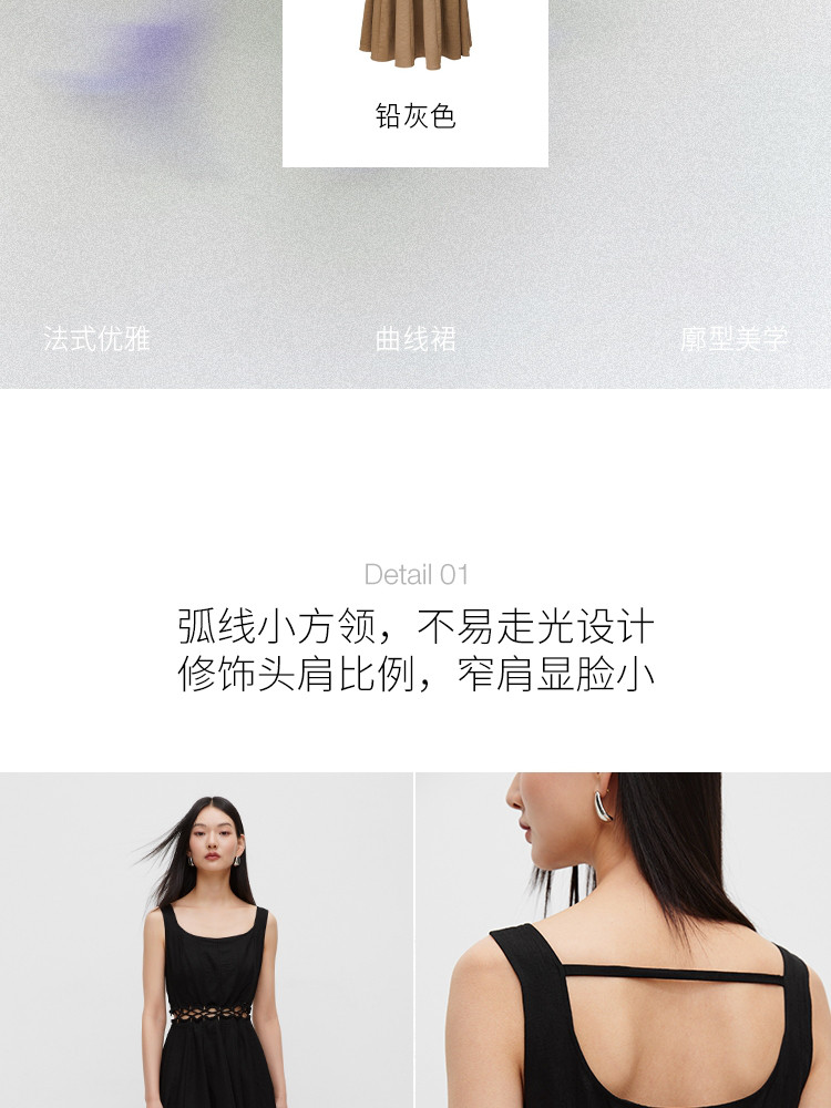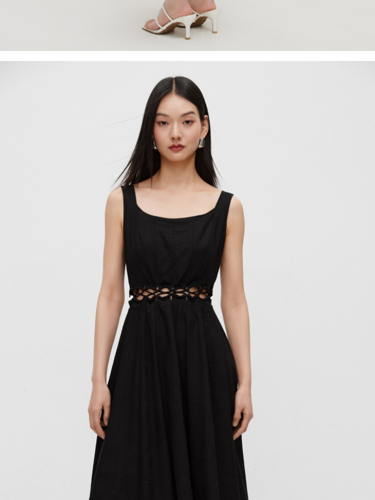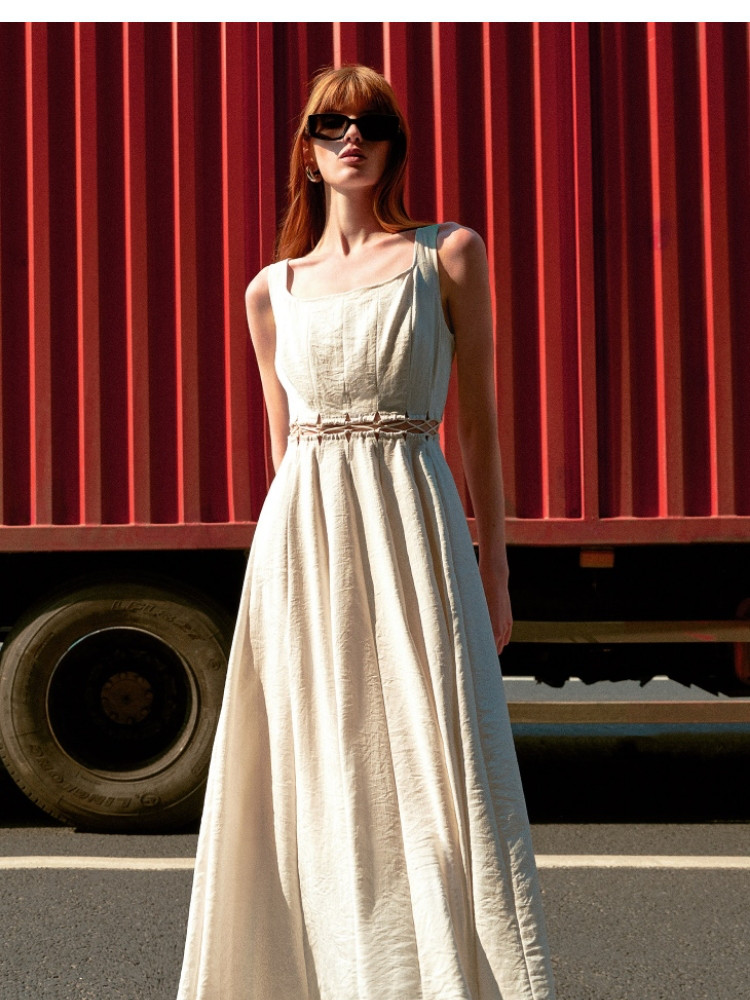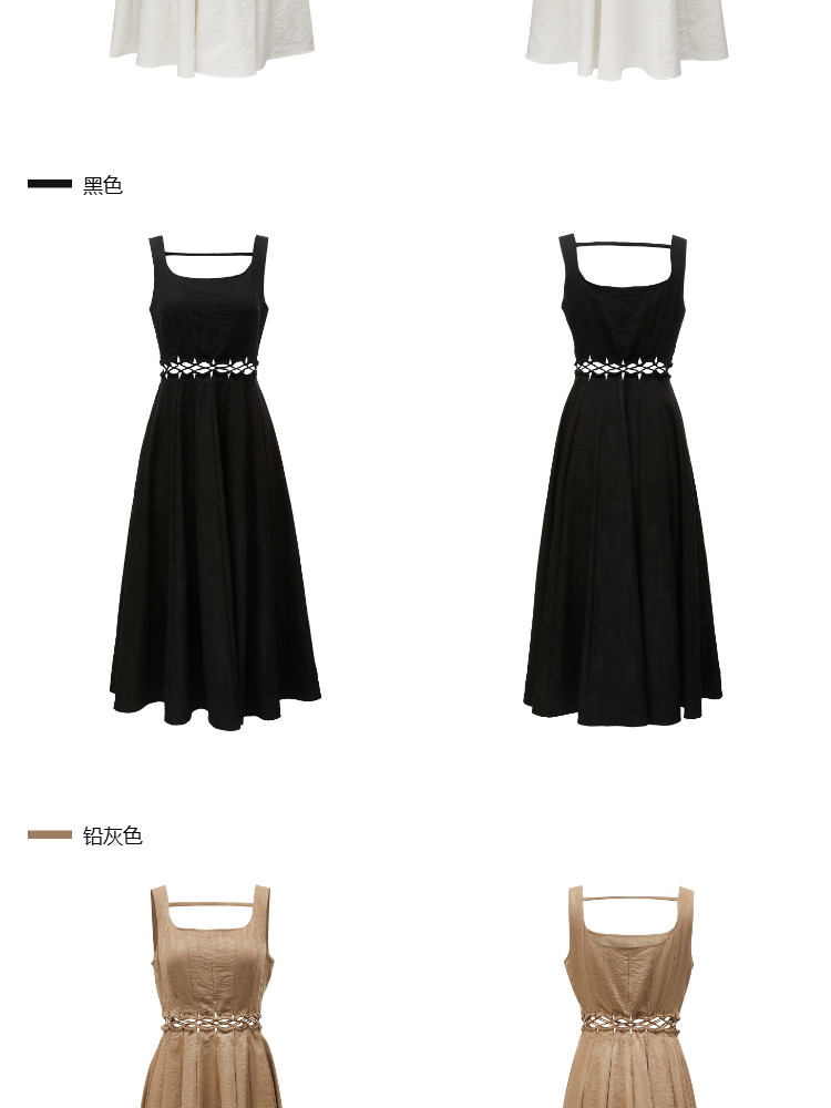 【通勤风】2025夏季简约U型领中长款吊带连衣裙女 126170