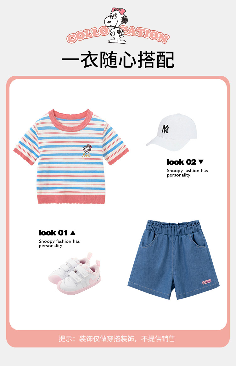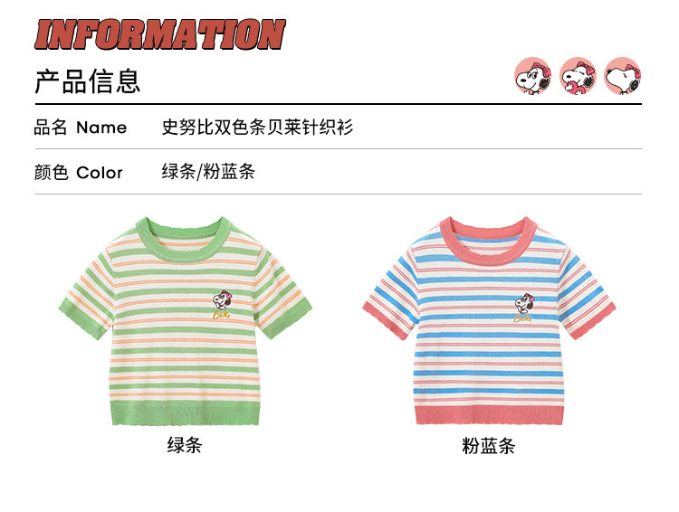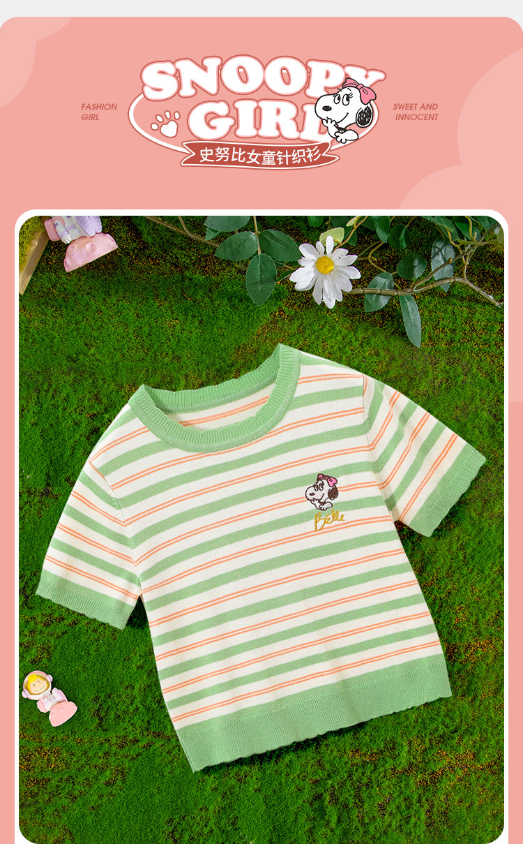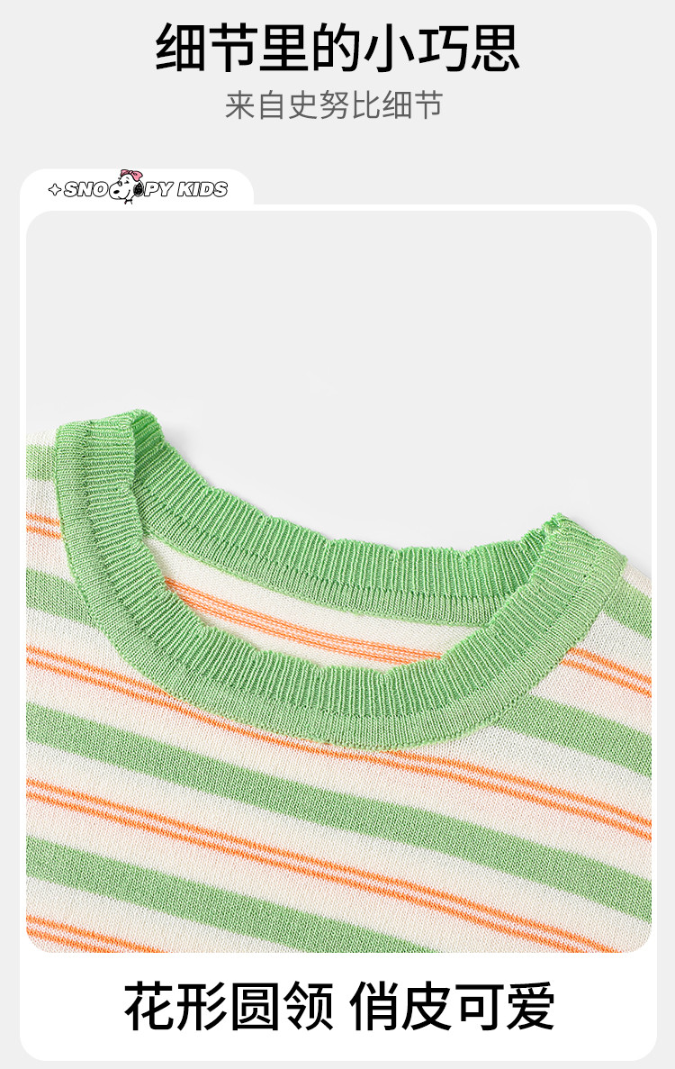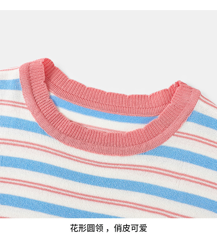商品名称:【透气薄款针织短袖T恤】夏季儿童透气条纹空调衫女童T恤 732184