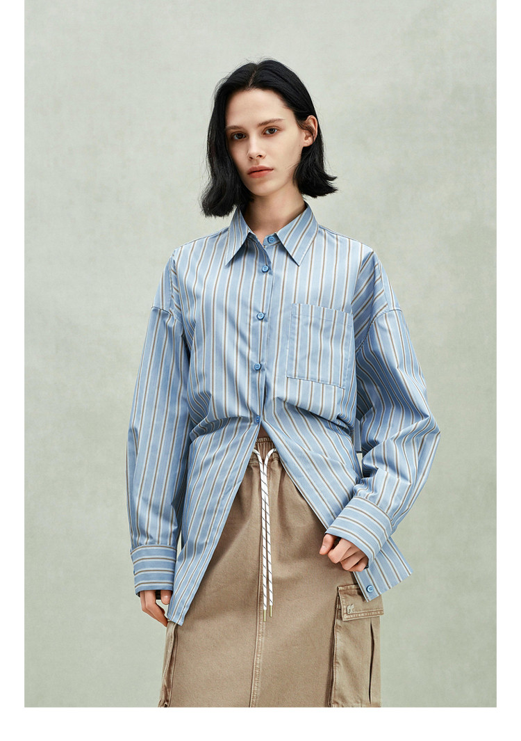限定系列OCH.春装 设计感休闲宽松长袖上衣条纹衬衫女 459215