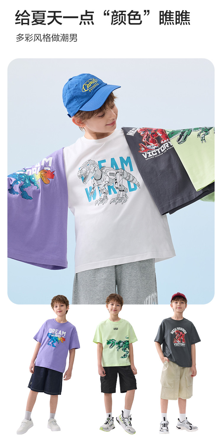商品名称:吸湿速干纯棉儿童短袖T恤男童夏装薄款打底衫2025新款童装 320517