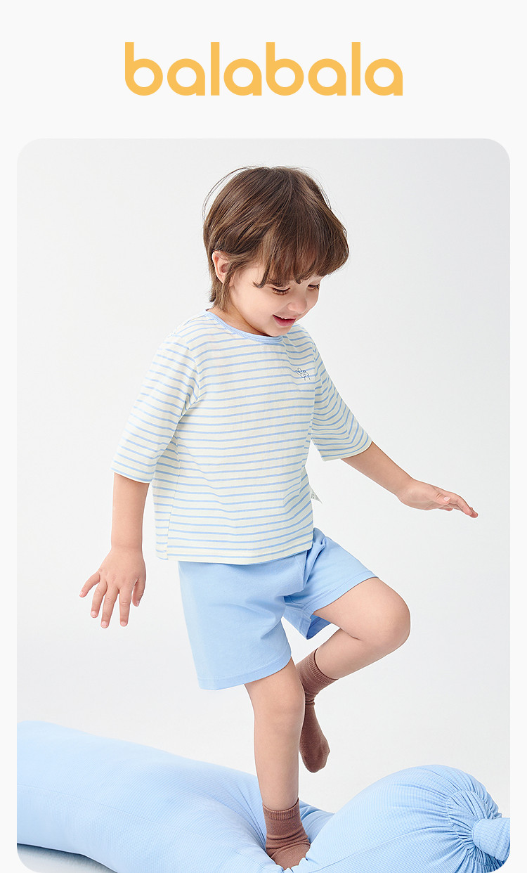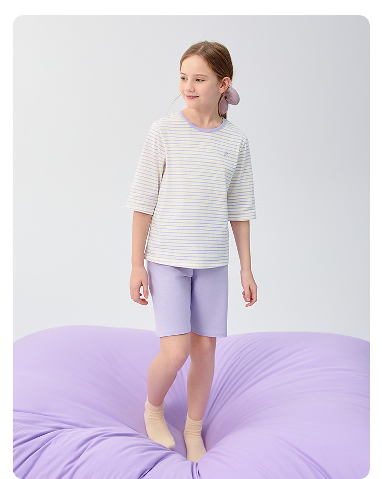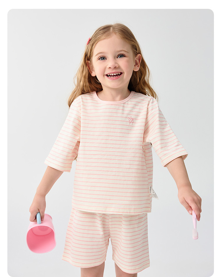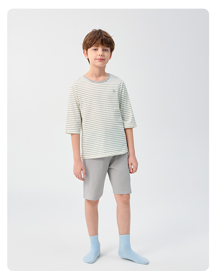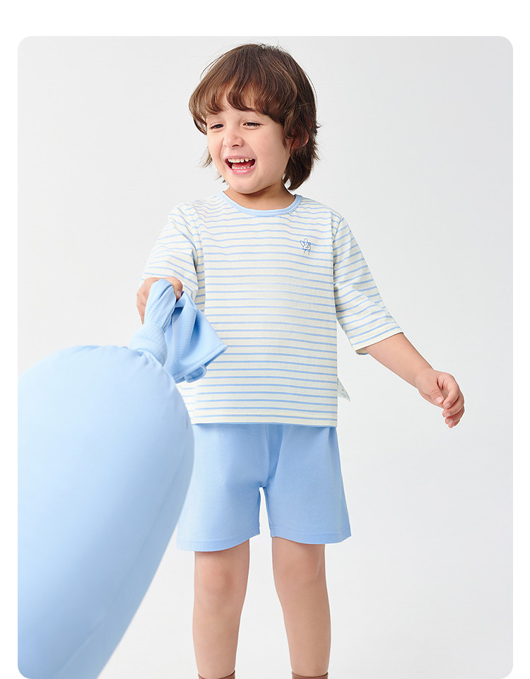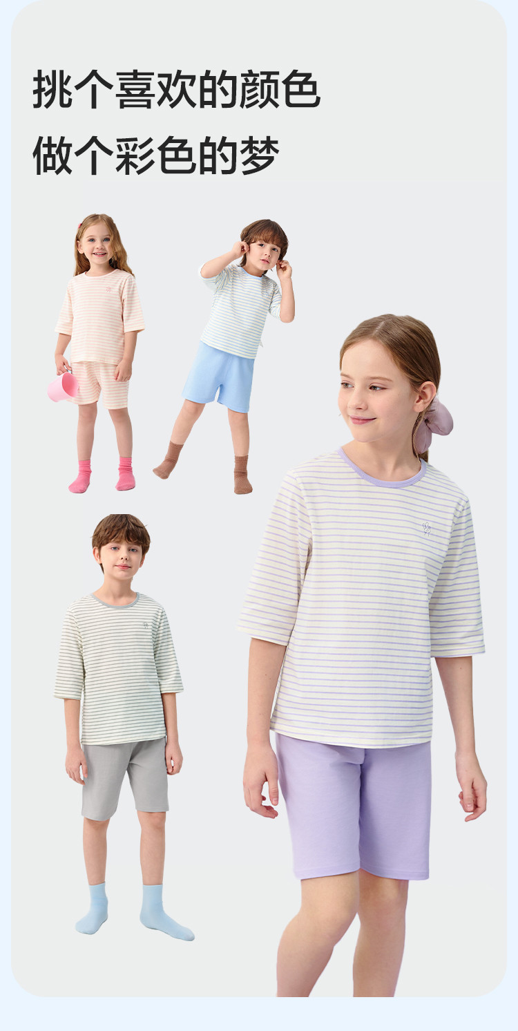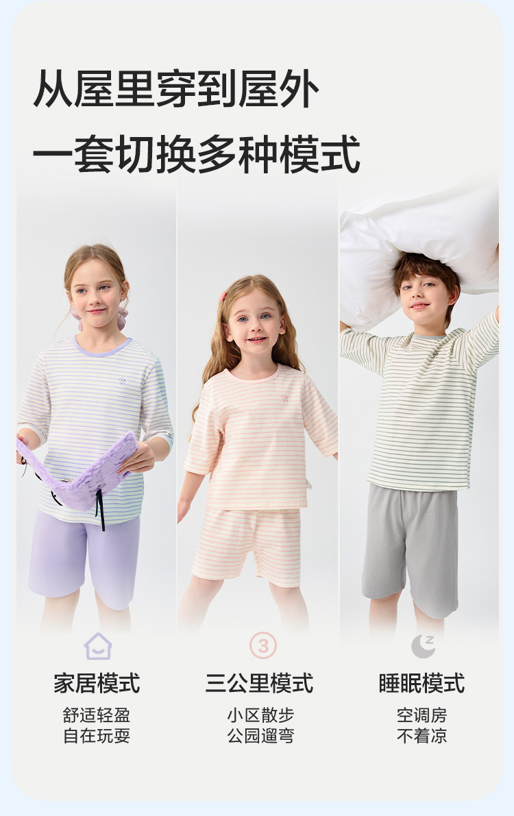 纯棉儿童睡衣夏薄款透气男童女童家居服中大童空调服亲子短袖套装 487813